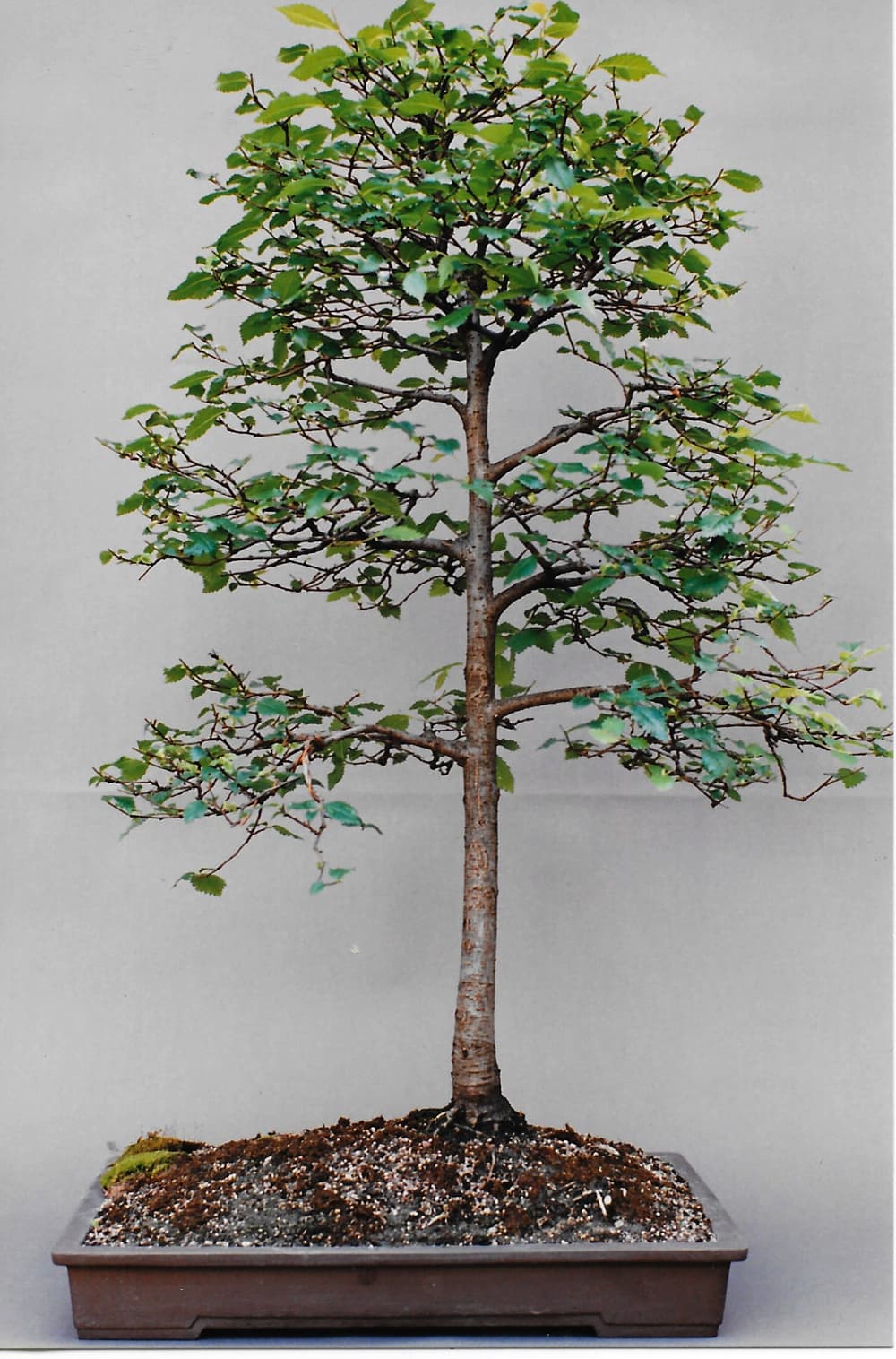 Je l’ai prélevé vers la fin des années 1980 avec une demi-douzaine de congénères : l’idée était de réunir des plants dans le but de composer une forêt. Ces ormes champêtres possédaient tous des troncs dont les diamètres oscillaient entre le crayon et stylo-feutre, y compris AP. 1 cm maximum.