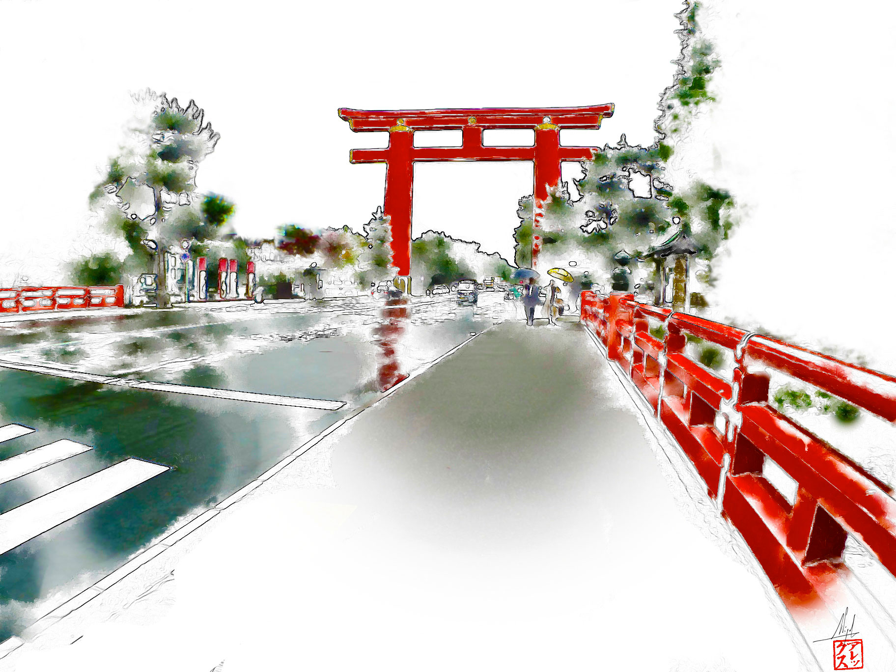 Tori sous la pluie a Kyoto