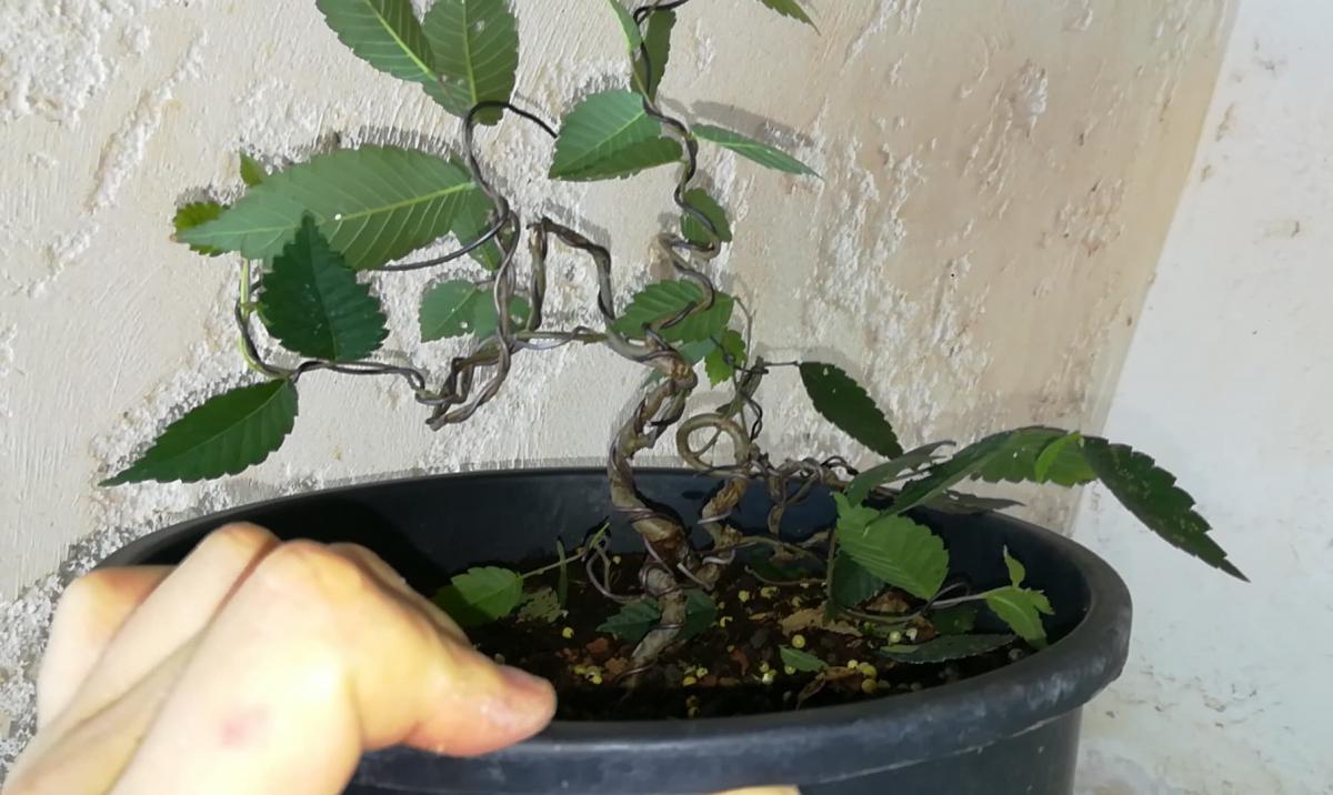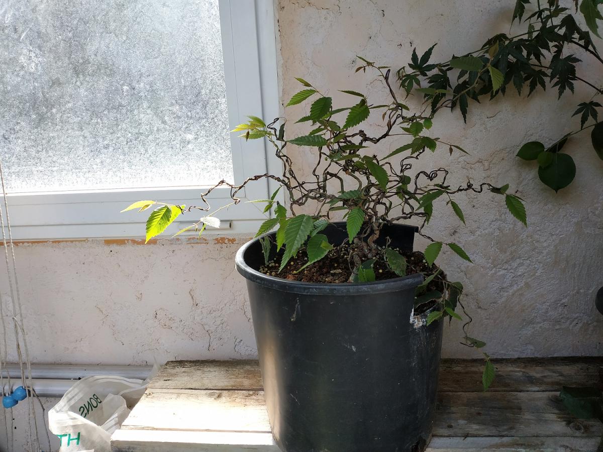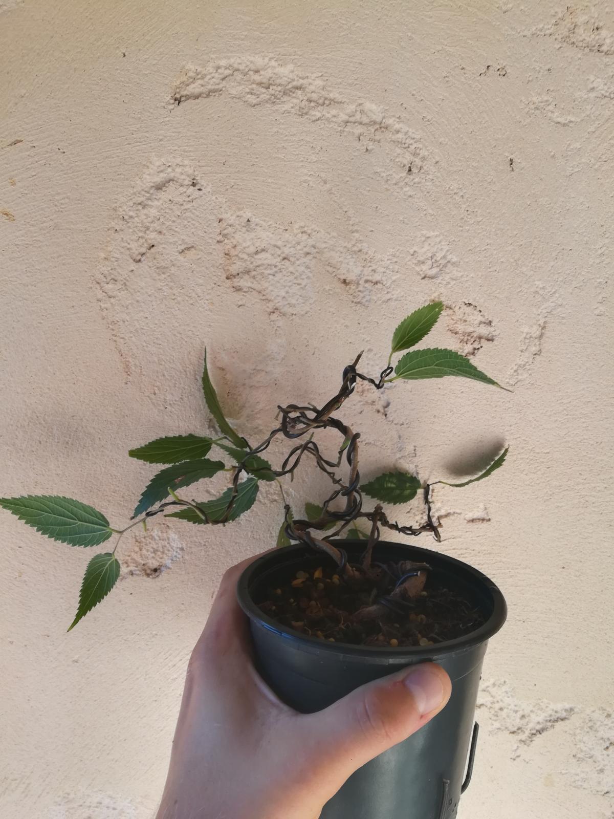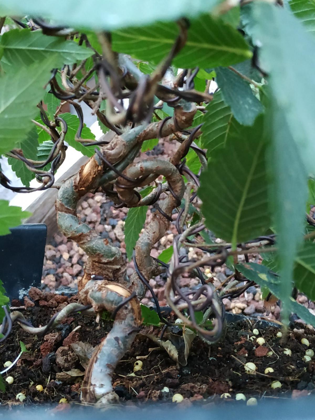 un petit zelkova semé en 2017 que j’ai décidé de tordre un peu dans tous les sens