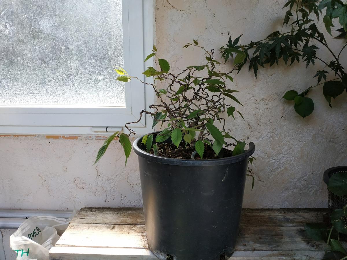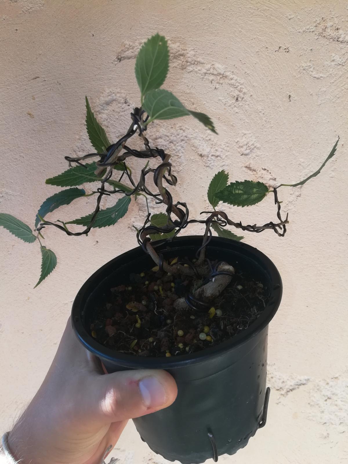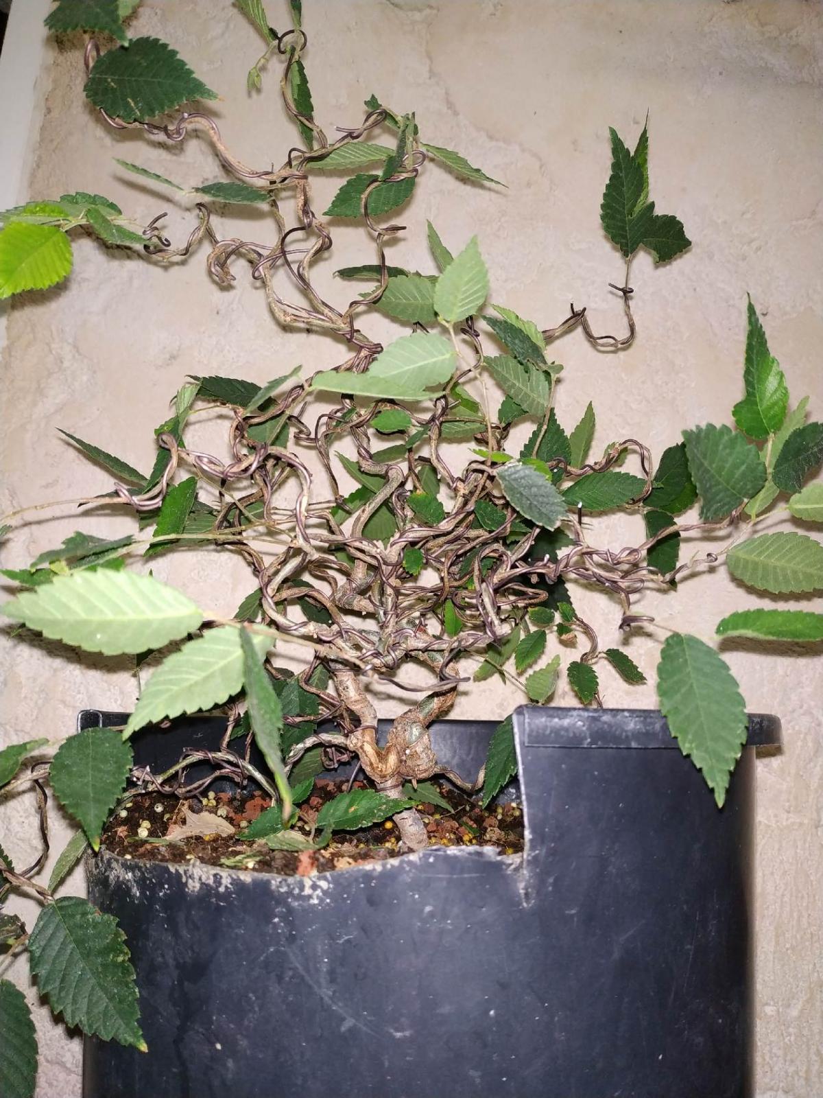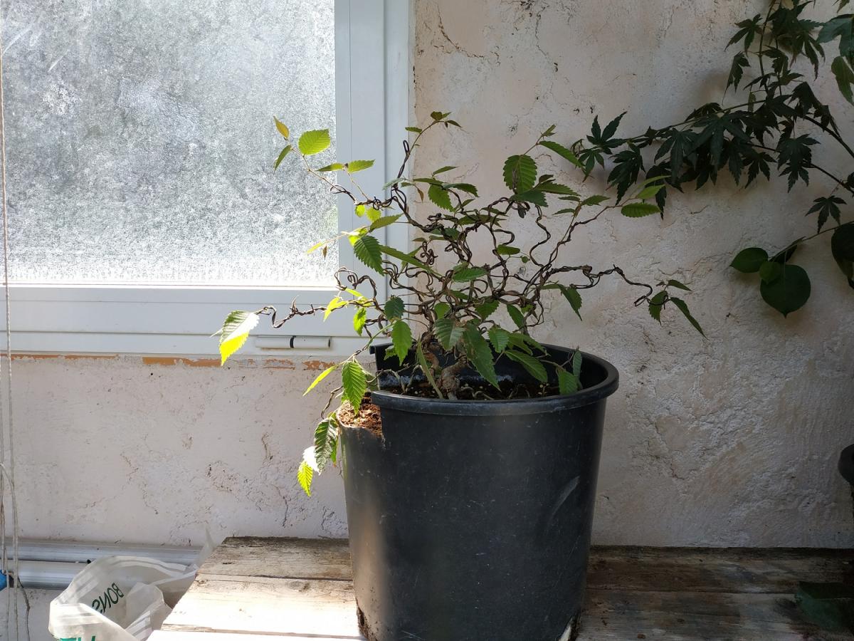 un petit zelkova semé en 2017 que j’ai décidé de tordre un peu dans tous les sens