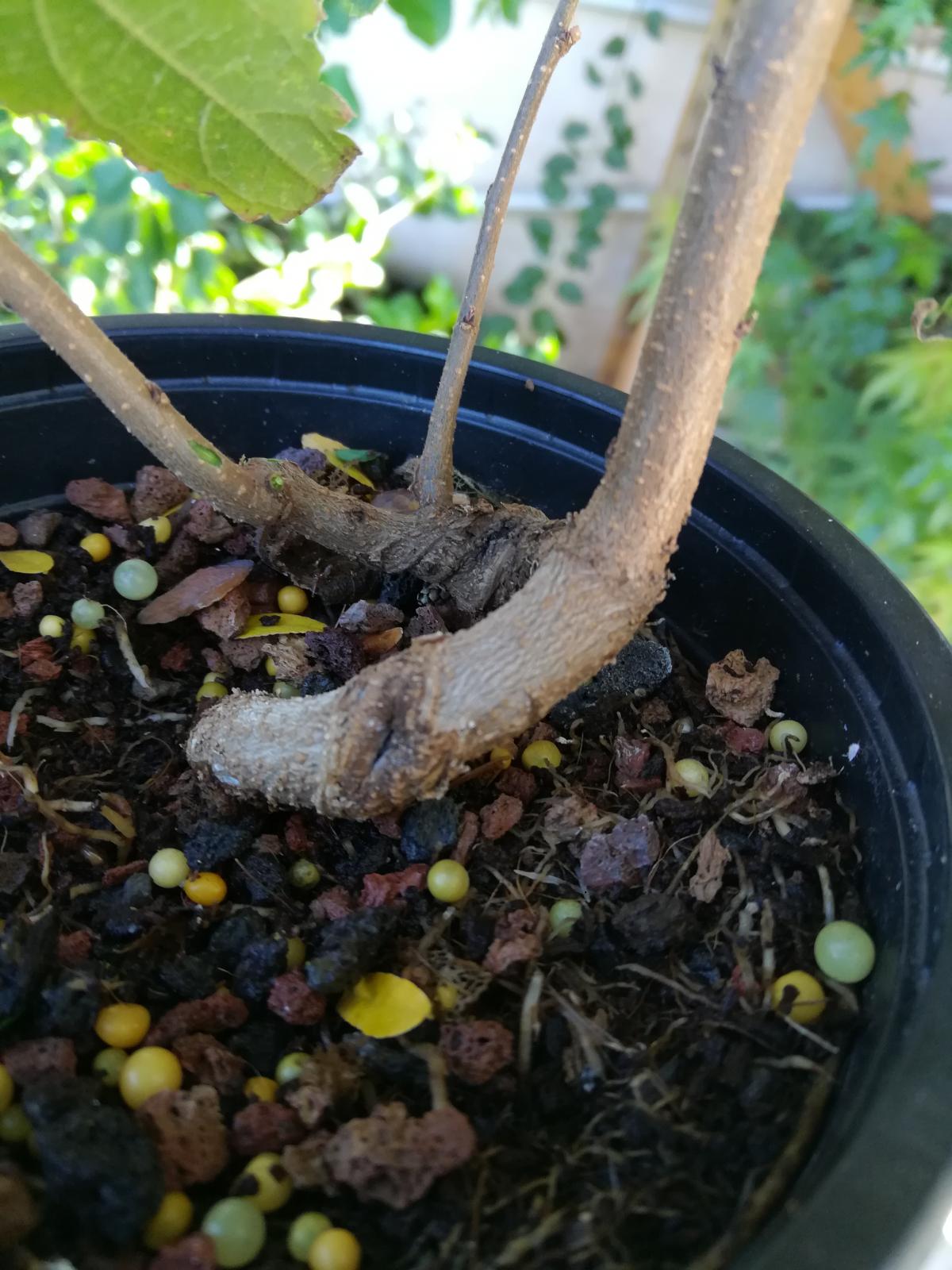 une semis de micocoulier de 2017. Au rempotage l’année dernière