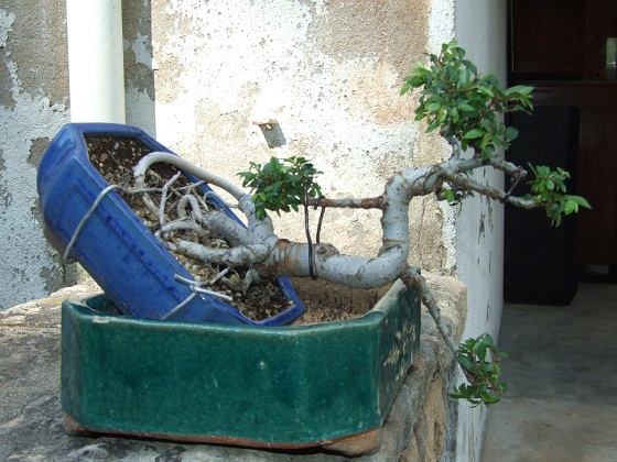 Ensuite envelopper le tout d'un pot noir en plastique et rempoter dans un pot à Bonsaï beaucoup moins haut ...