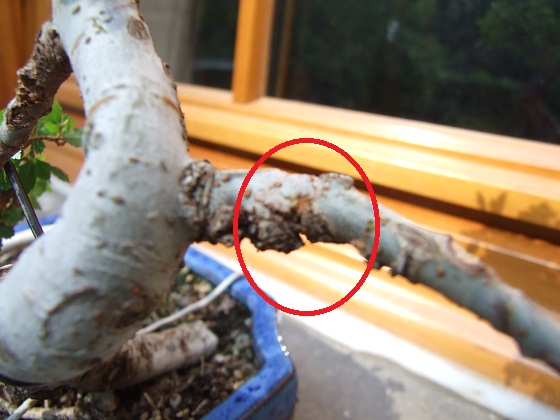 Quand j'ai rempoté l ' orme le 22 mars , vous pouvez voir ci-dessus en photo ( 5 ) que j'ai coupé une branche .