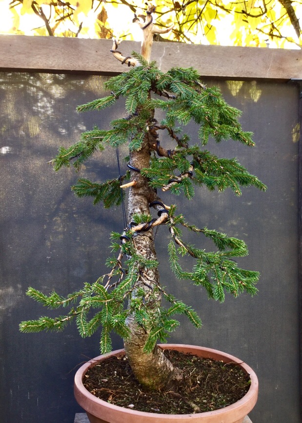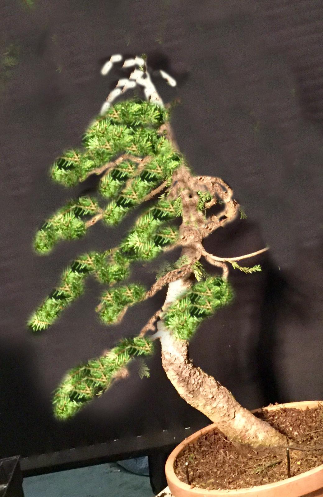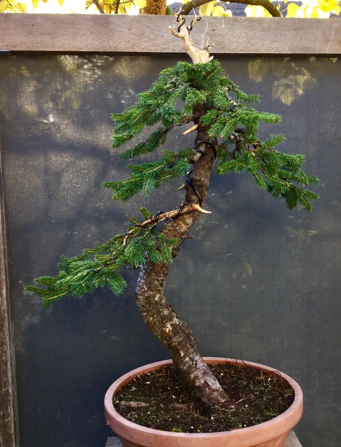 Fin 2016 je décide de raccourcir le haut mais en laissant encore un peu de vivant en vu d’un éventuel ten jin. Cela permet dé rediriger la force dans les branches du bas.