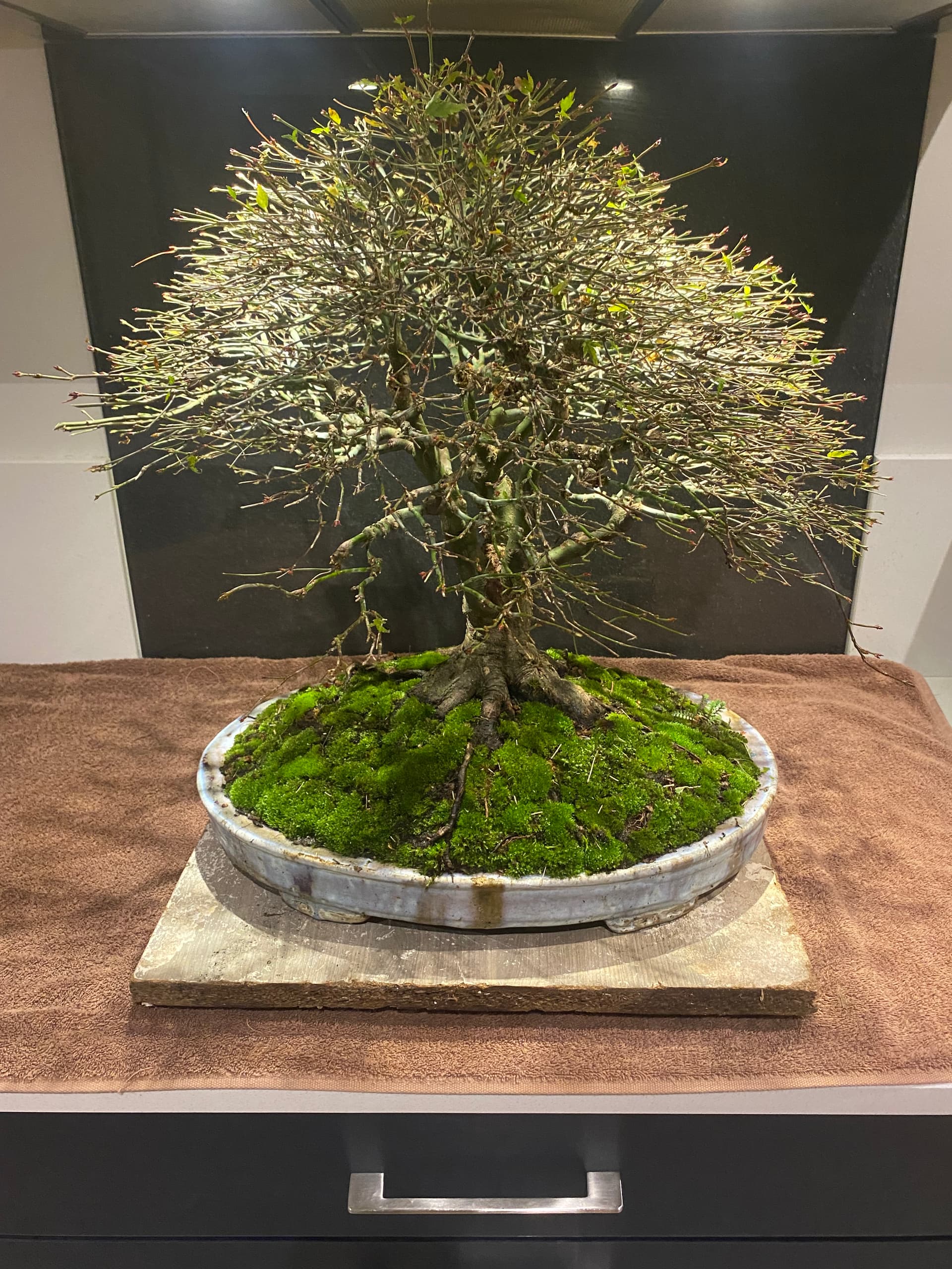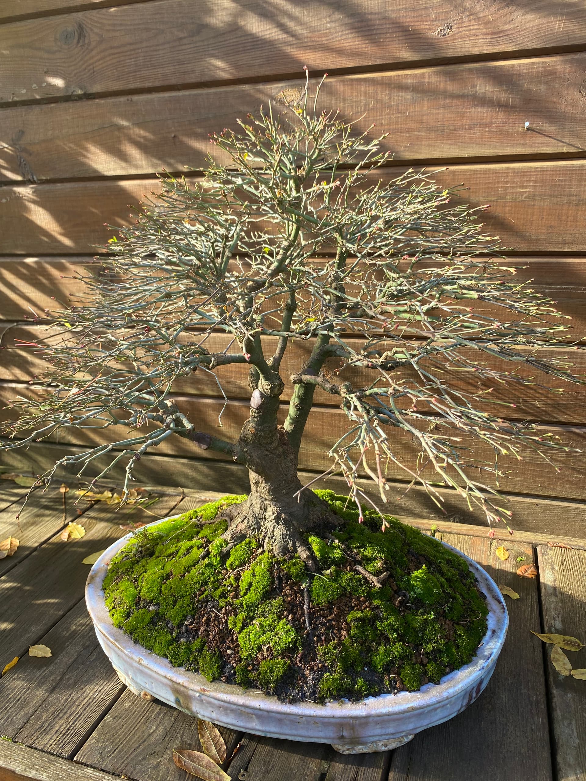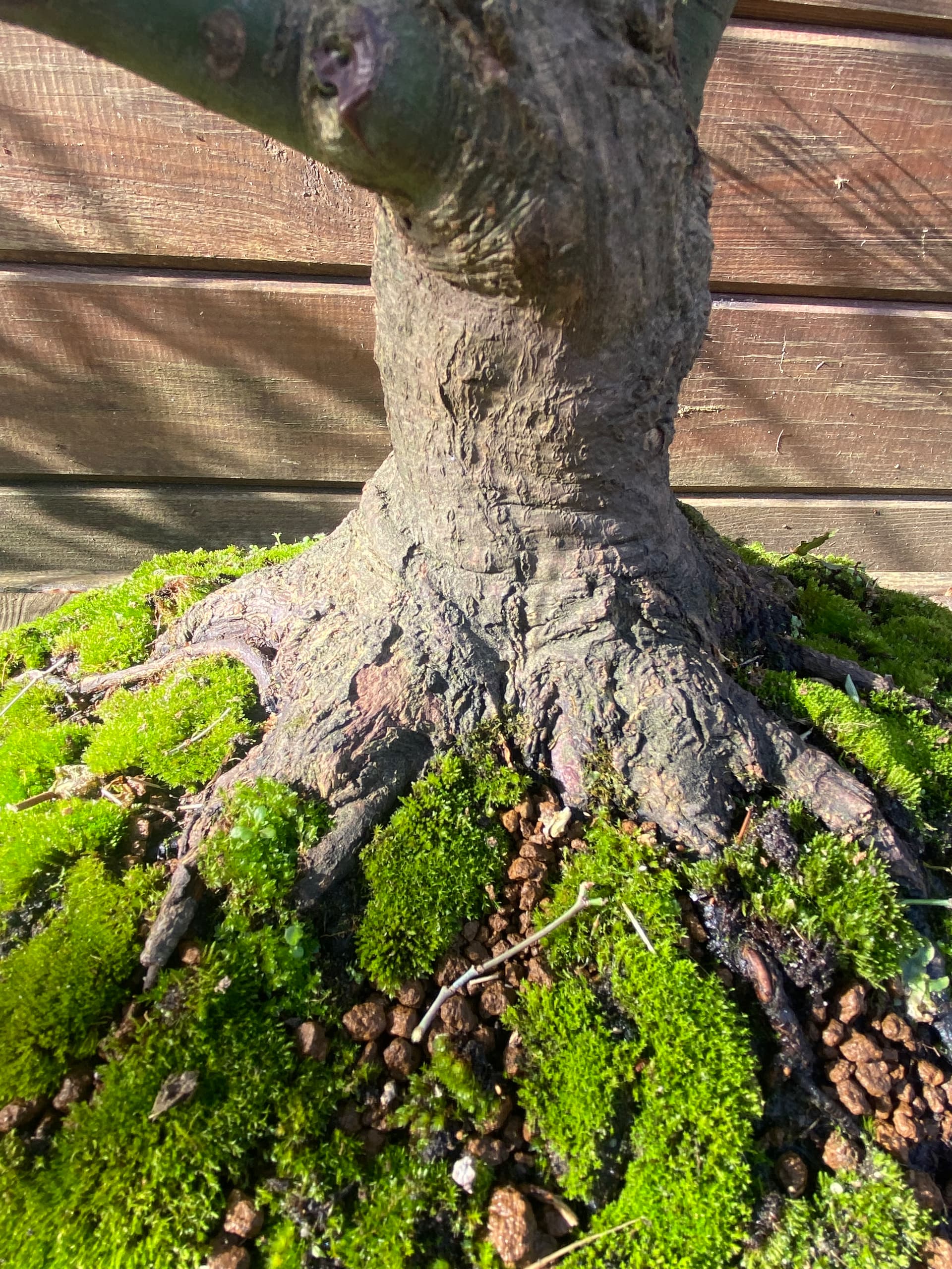 Personnellement j’exposerais plutôt cet arbre en feuilles, où il présente toutes les qualités esthétiques d’une forme en balai (splendide couronne de végétation dense, tronc court et droit, et très beau Nebari)