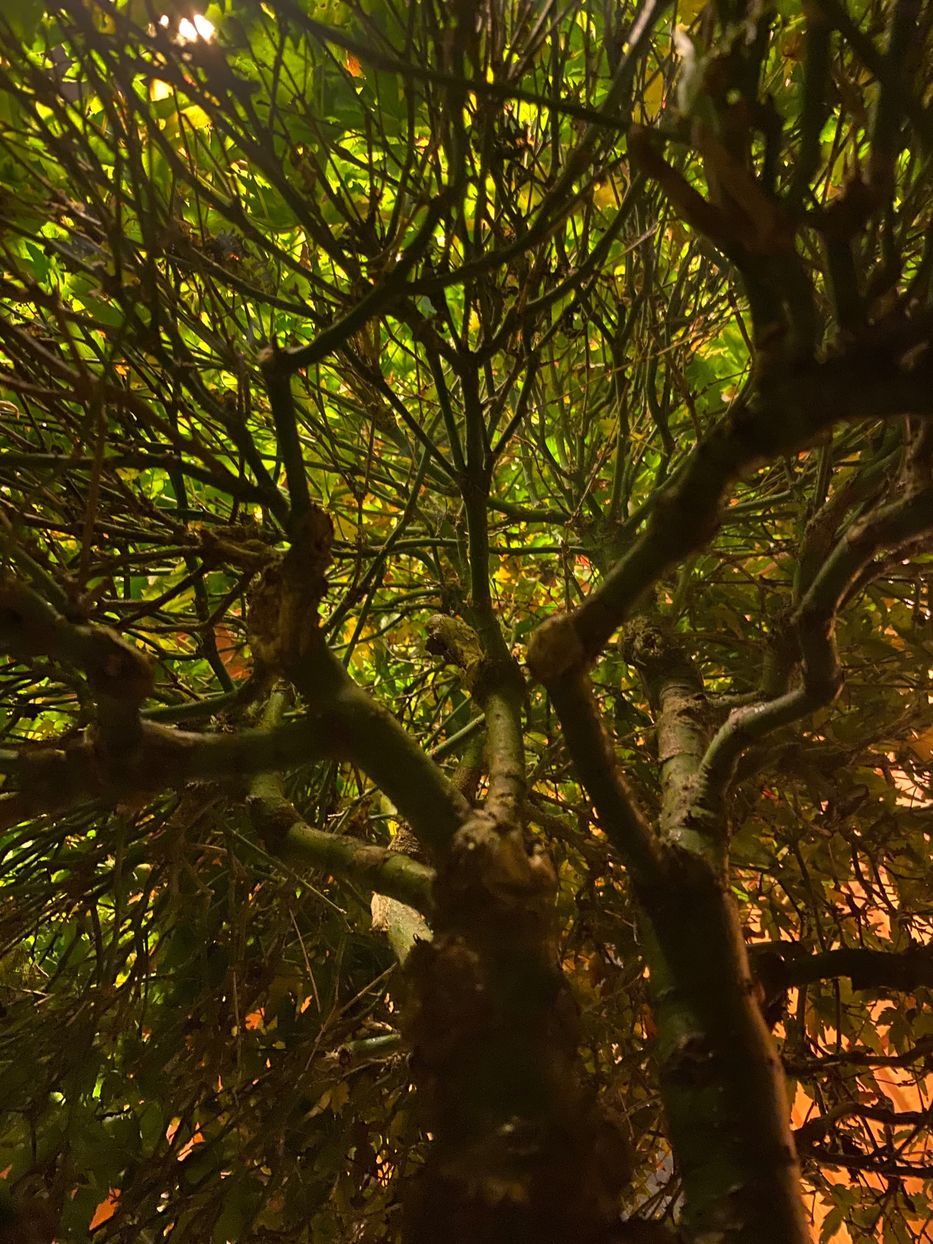 Je trouve qu’une fois le feuillage Tombè ces différents troncs dégagent une âme qui leur est propre, puis redisparaissent au printemps sous cette canopée pour ne former qu’un.