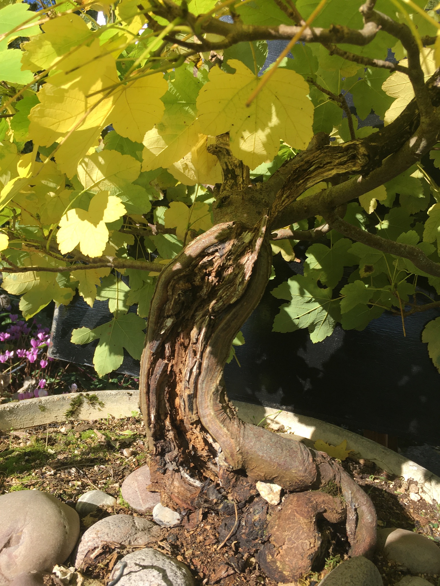 Sycomore bonsaï – maturation de l’écorce en cours.