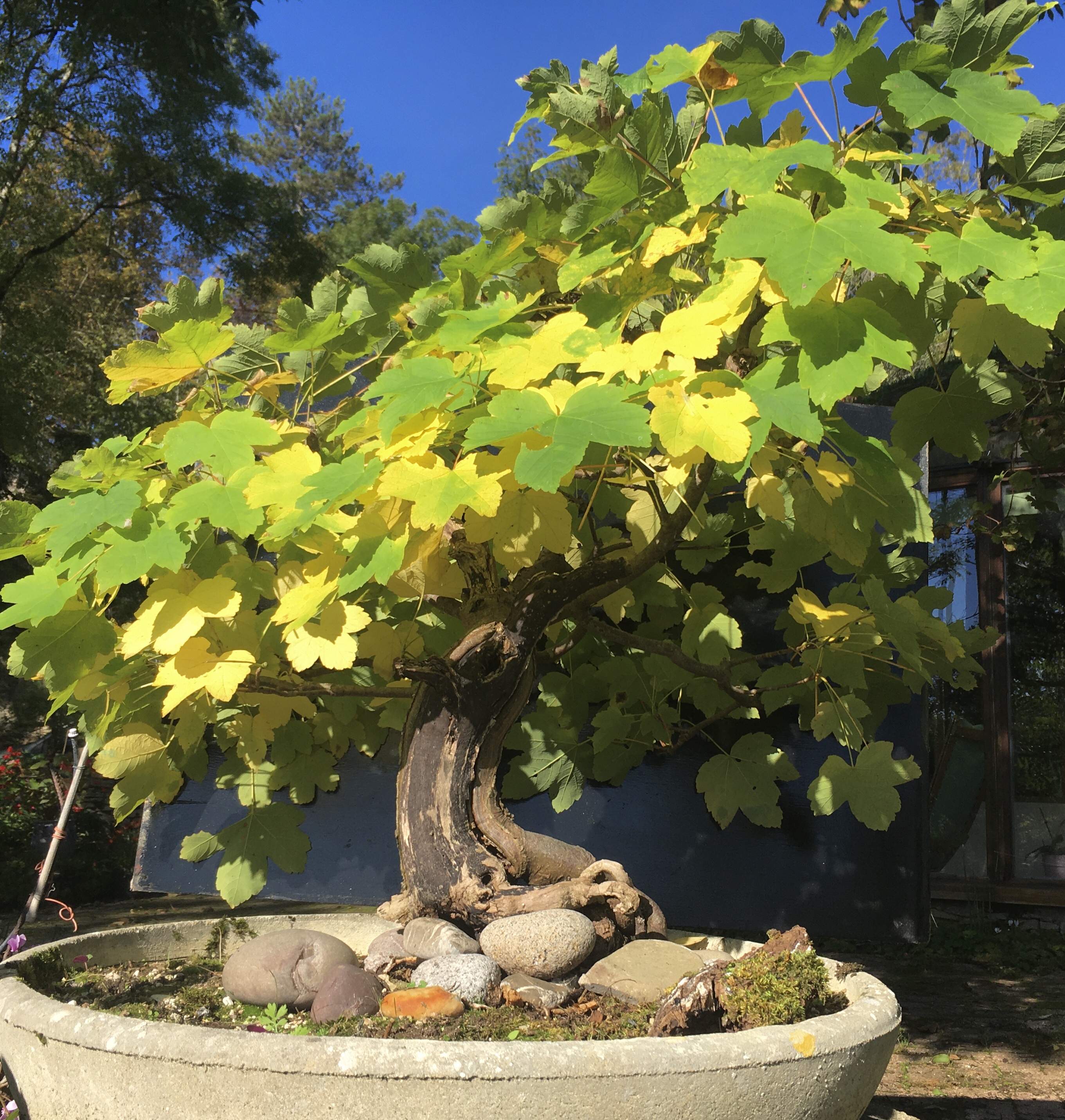Les dimensions de la feuille du sycomore nous imposent de créer un arbre de grande taille afin d’améliorer l’harmonie entre la taille de l’arbre et celle des feuilles. Les plus vertueux d’entre nous pourront s’essayer à travailler des arbres de taille plus modeste ; il faudra alors maitriser l’équilibre entre l’arrosage, le soleil, le substrat, la taille et la quantité d’engrais forcément restreinte.