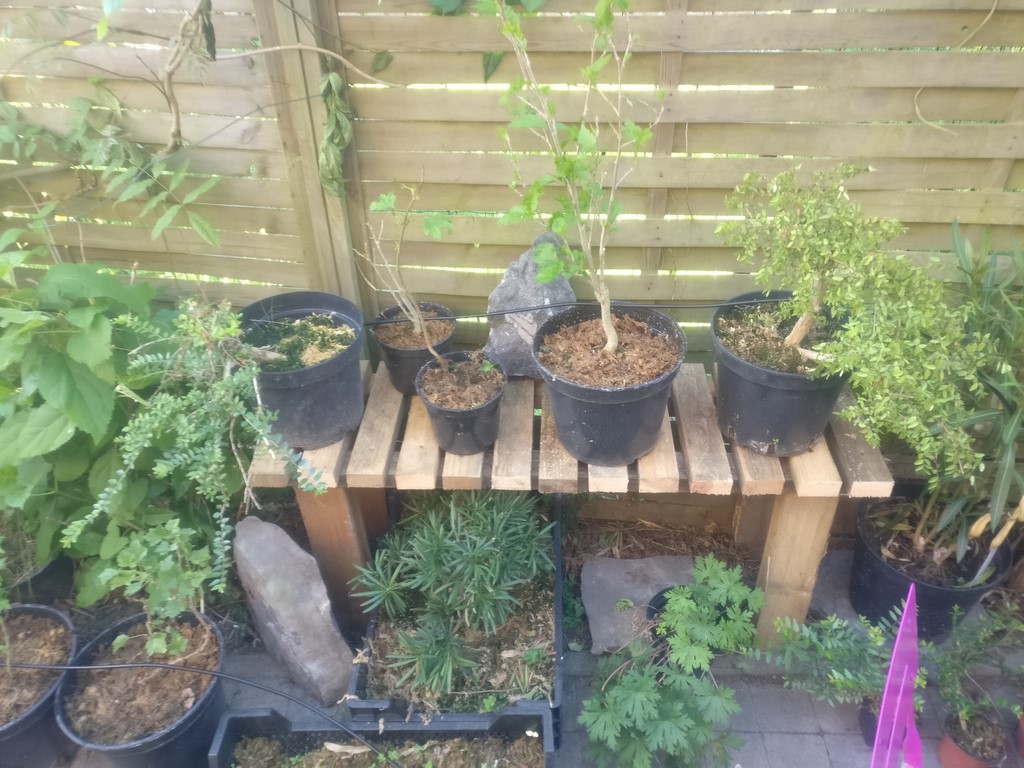 melange de plantes , bonsai et (peut etre ) futur bonsai