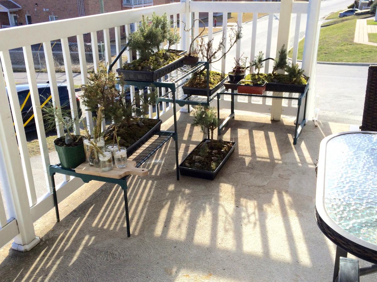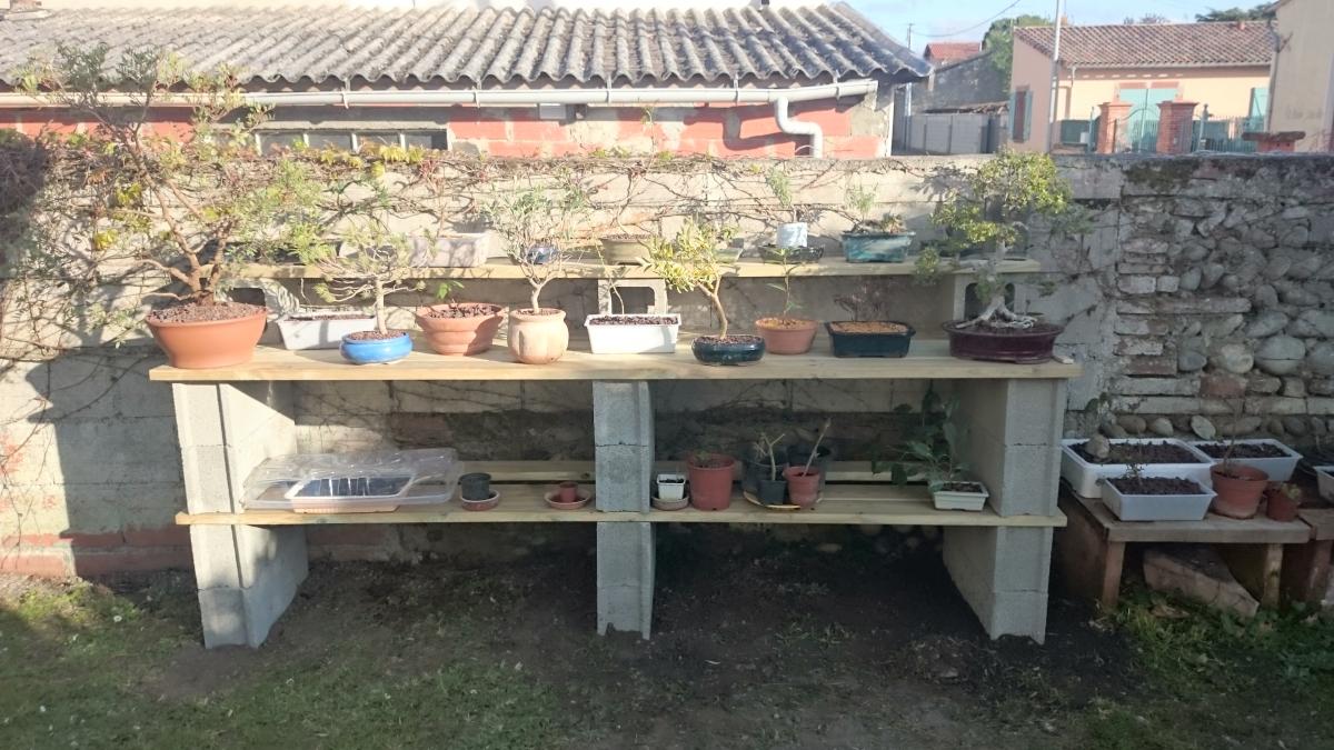 Bon, un an après le déménagement, il est temps de songer à donner à mes quelques arbres un présentoir digne de ce nom en lieu et place des parpaings et autres vieilles billes de chemin de fer.