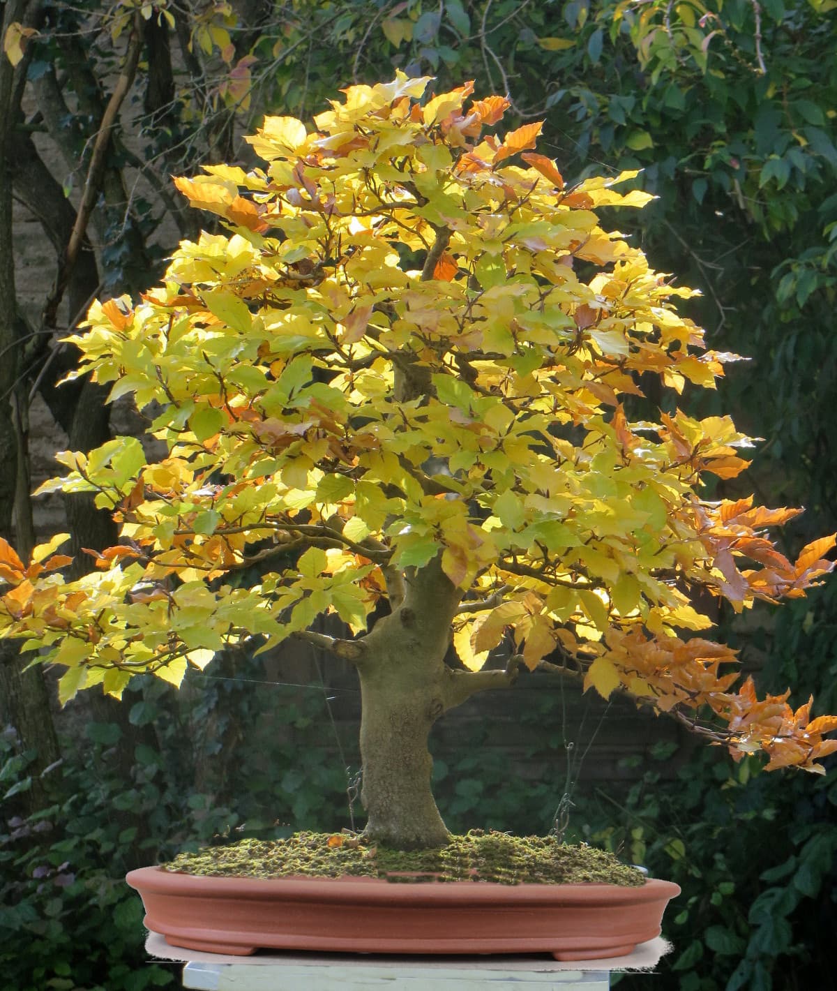 C’est sur que pour « apprécier » la qualité d’un arbre (selon les critères du bonsaï), il faudrait le voir sans les feuilles… Néanmoins , cet arbre est très beau, esthétiquement parlant, encore plus avec les couleurs d’automne.