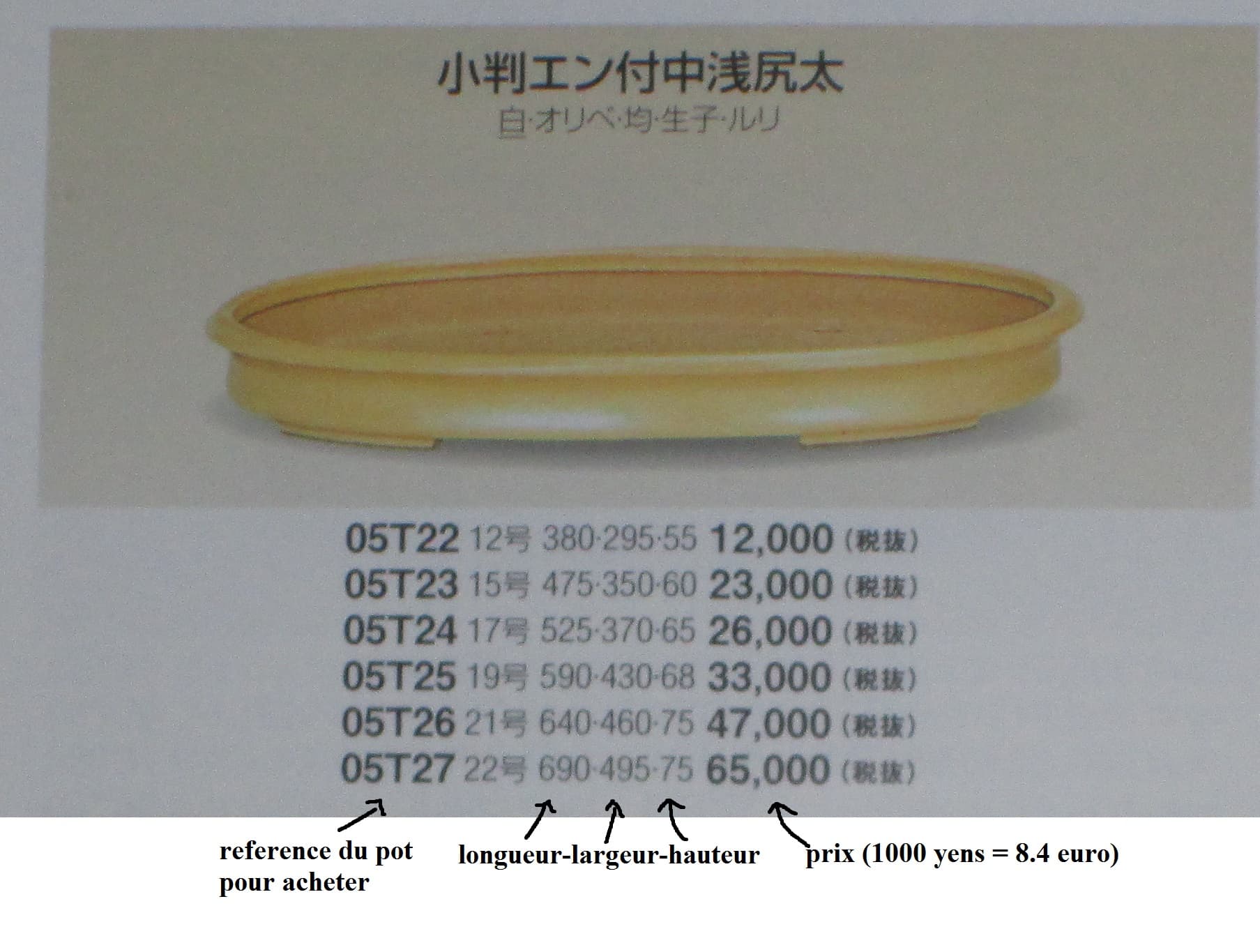 voilà le pot chez moi (mauvaise lumière mais on voit que la couleur est moins jaune que sur le catalogue tokoname) →