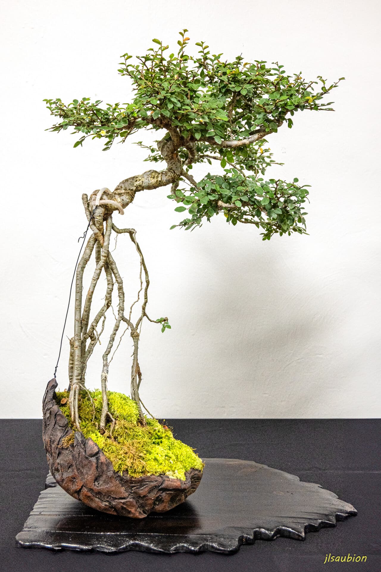Mais je tiens à encourager votre initiative qu’on a vu l’an passé : des piédestals qui permettent de tourner autour des arbres. Cela permet au spectateur de sortir d’une vision unidimensionnelle des bonsaïs