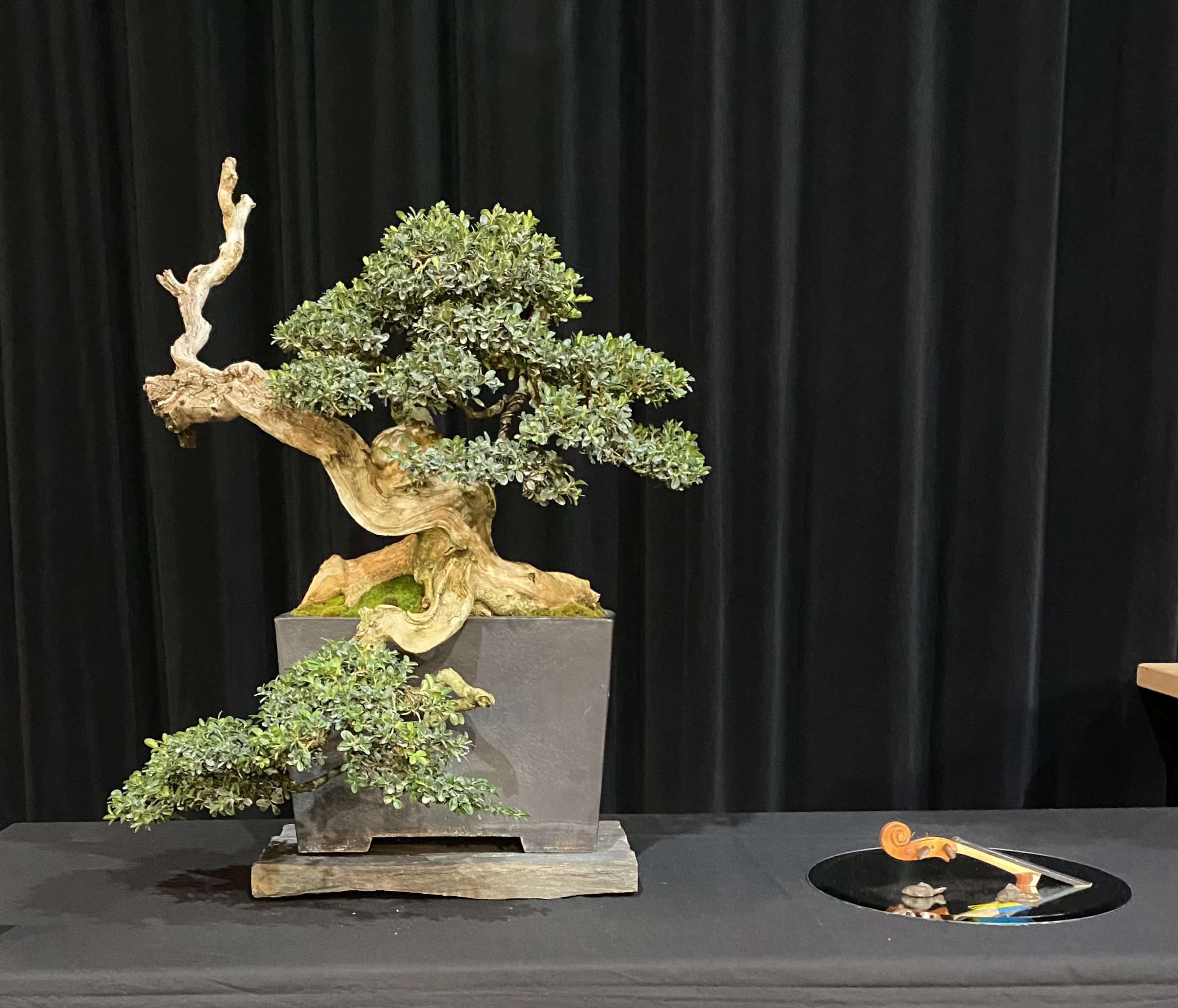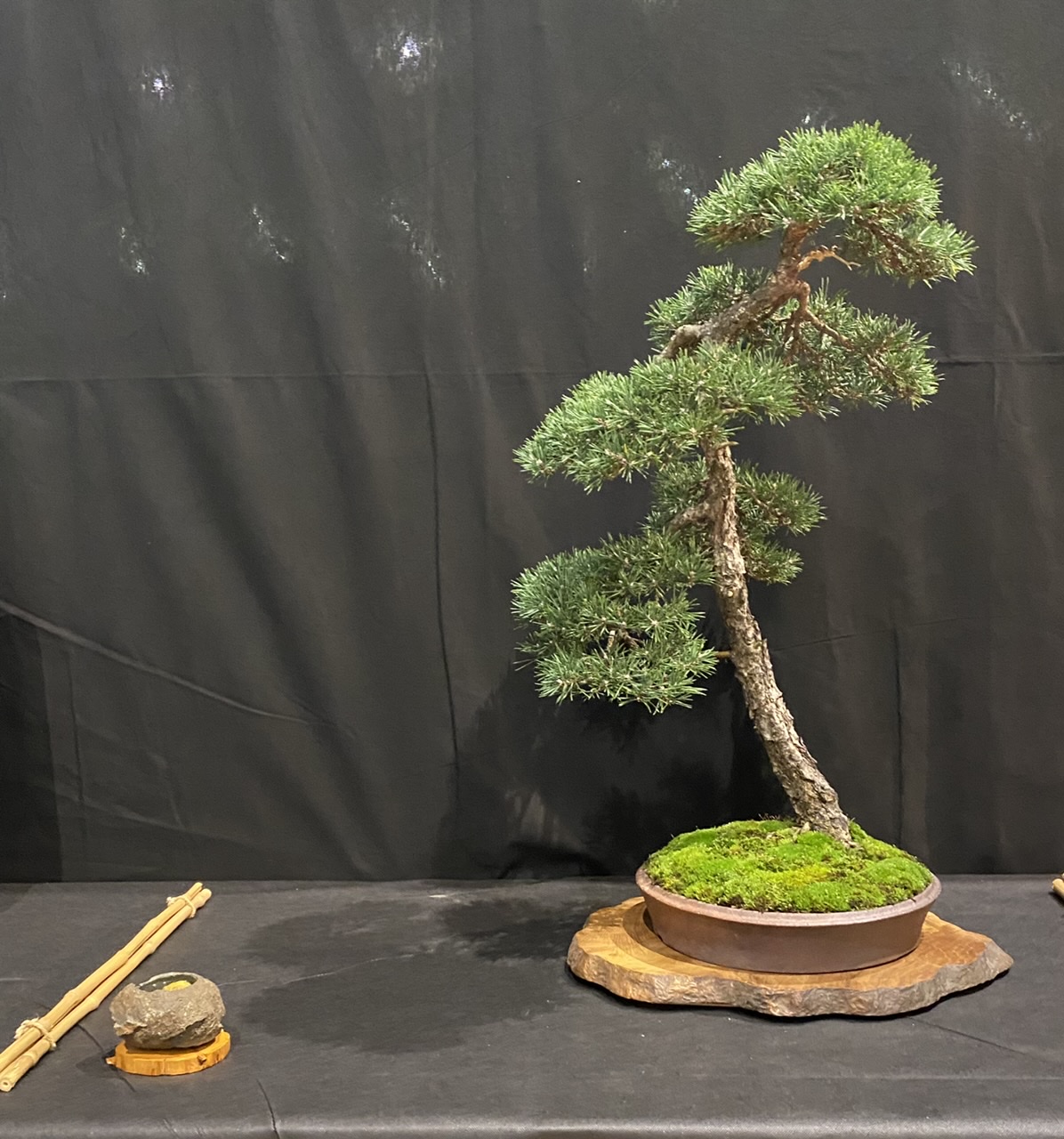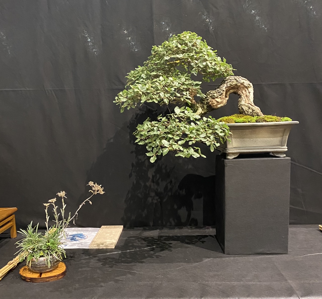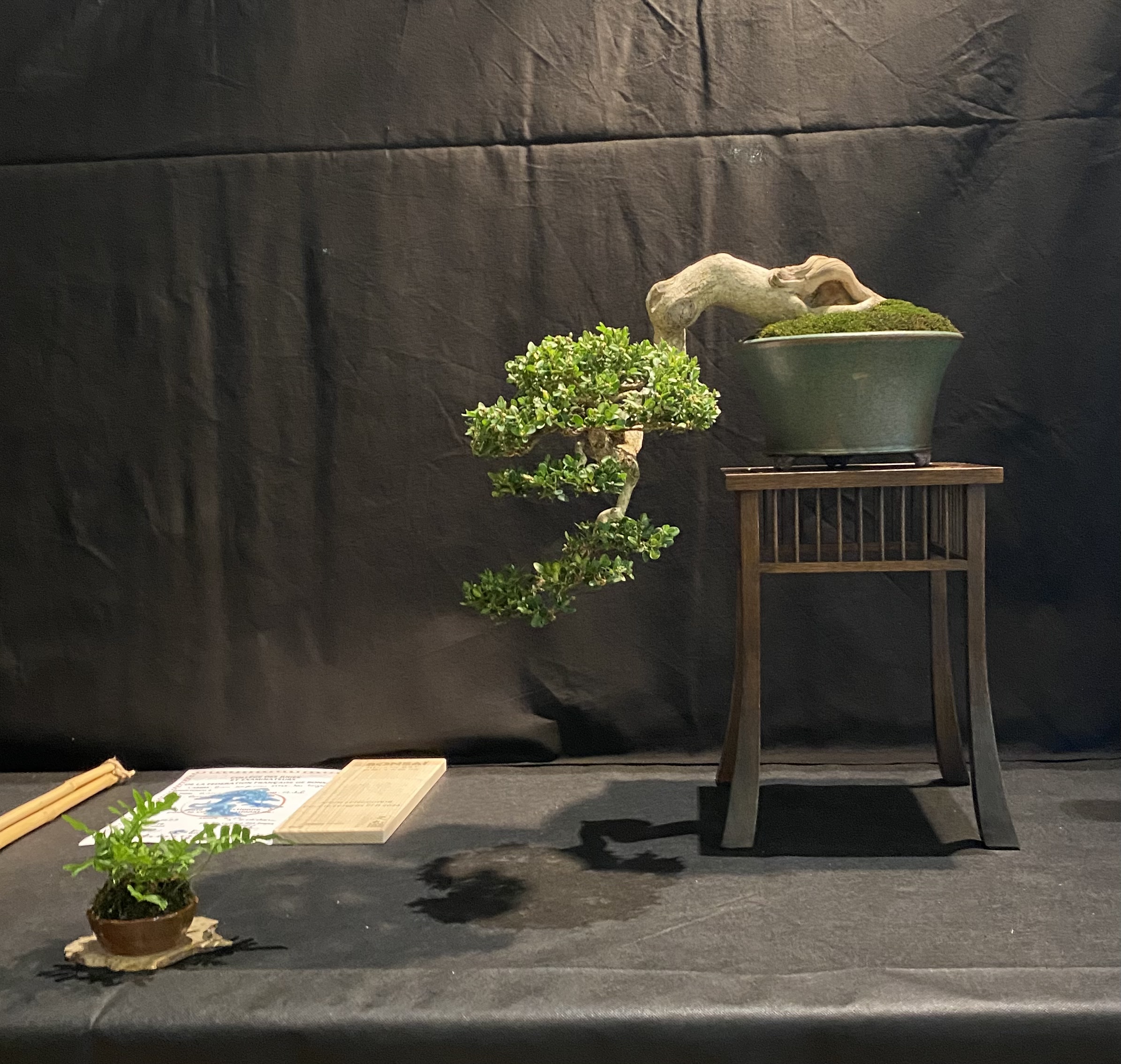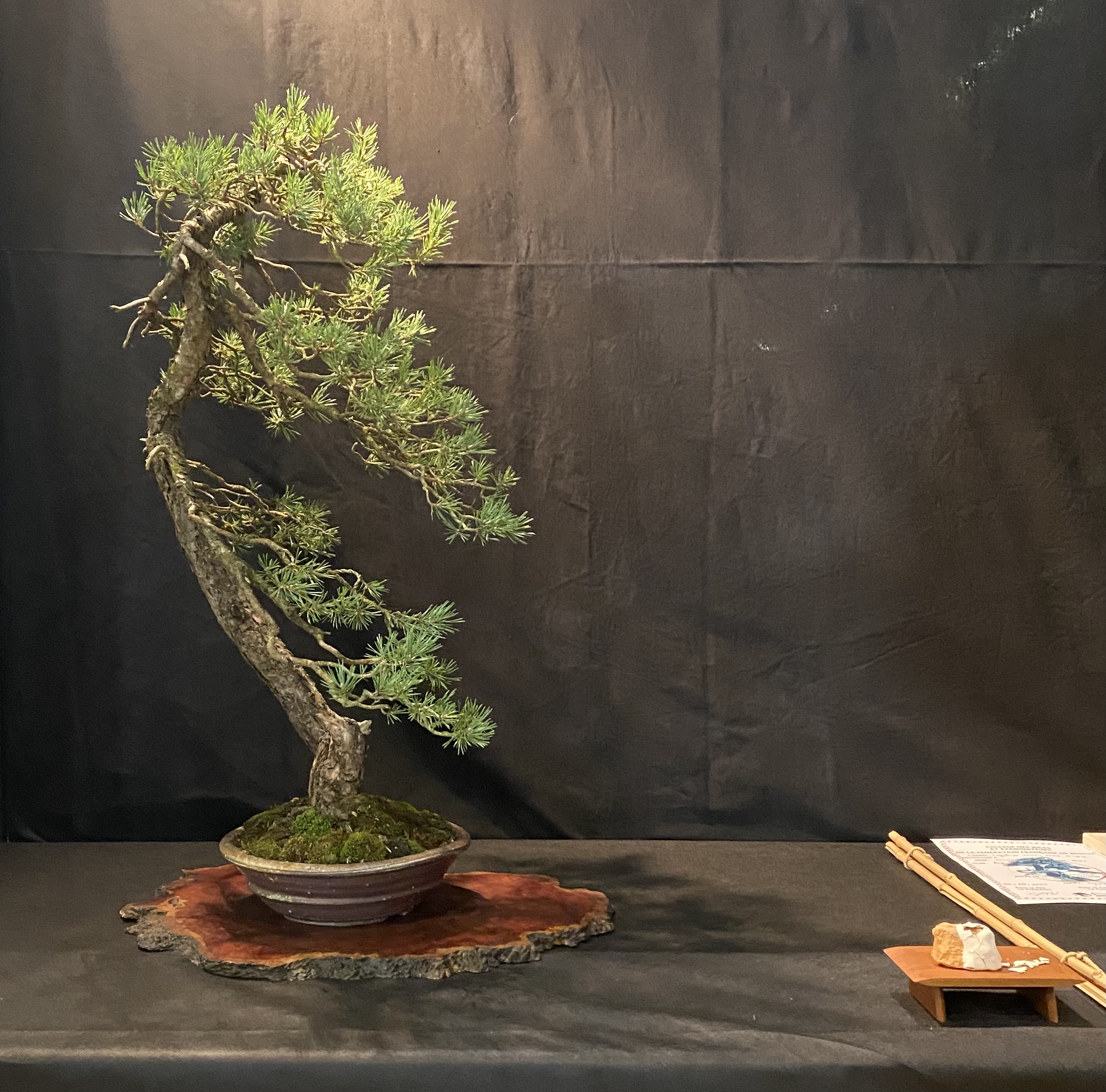 Par contre, il a plus d’ouverture d’esprit aujourd’hui sur les expos en exposant son arbre sans mousse au sol, ou l’on voit le substrat … c’est un choix du proprio ou oubli , ou non connaissance de cette option ? Qui sublime l’arbre perso je trouve …