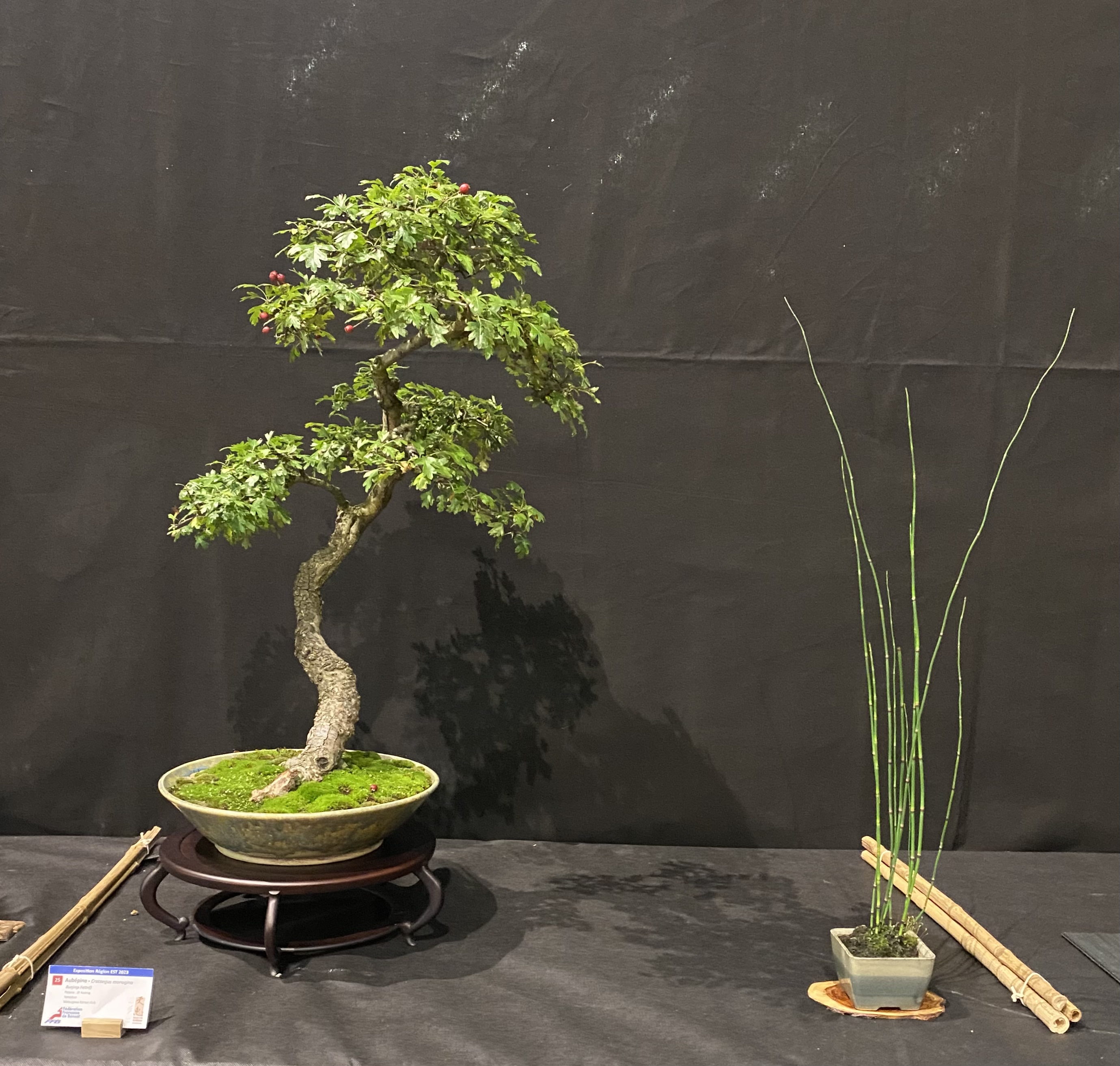 Environ 80 arbres exposés par les membres de tous les clubs de la région Grand Est, ainsi que des arbres exposés hors sélections par François Jeker, Jean Paul Polmans, le groupe Mitomo et l’association de L’Ascap Bonsaï d’Audincourt.