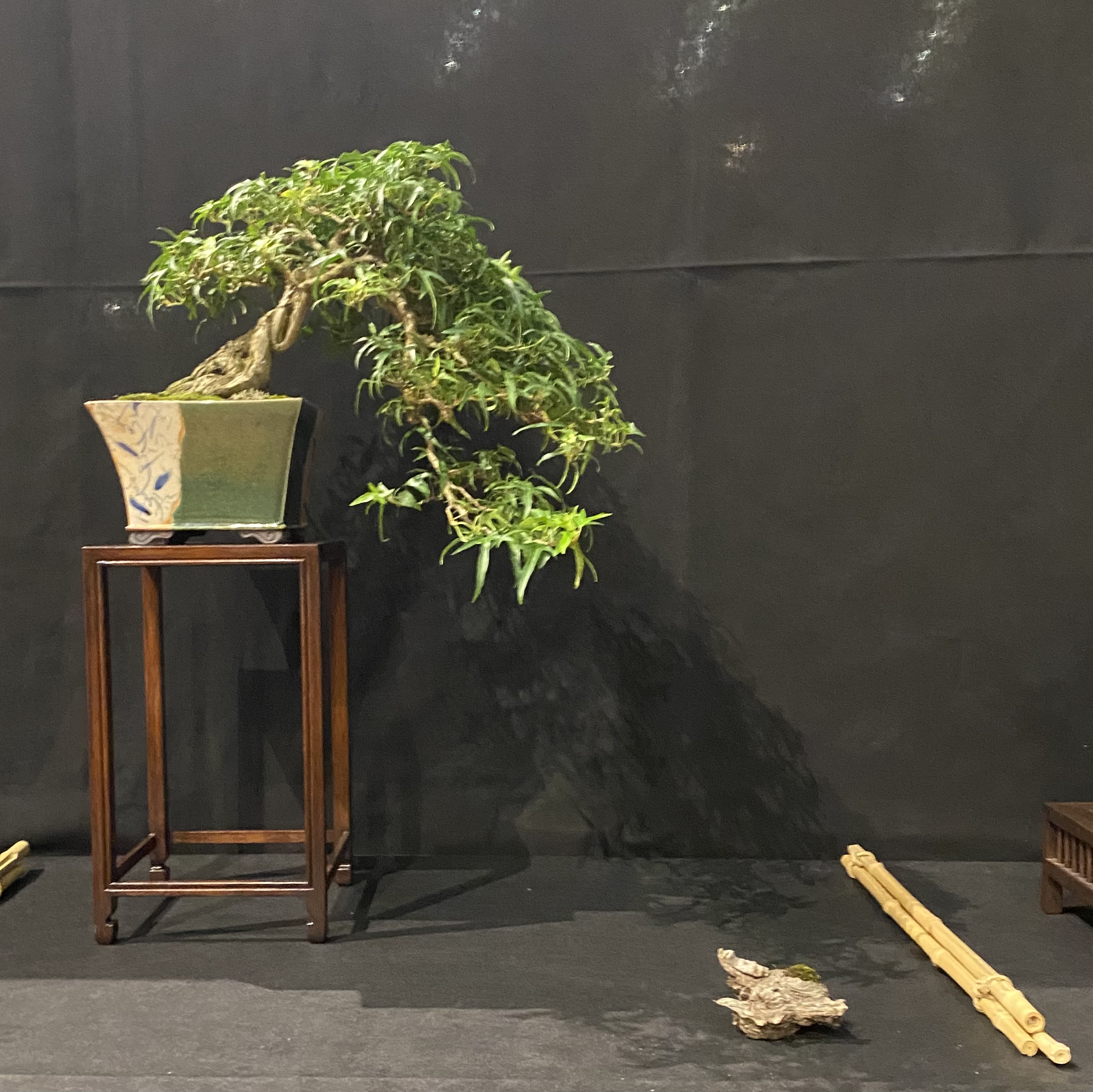 De très jolis arbres ! Il y en a un qui m’interpelle celui qui a un feuillage découpé, dans son pot carré sur une tablette haute, l’espèce de cette cascade est difficilement reconnaissable, peux tu éclairer ma lanterne lolo ?. Bravo pour cette expo.
