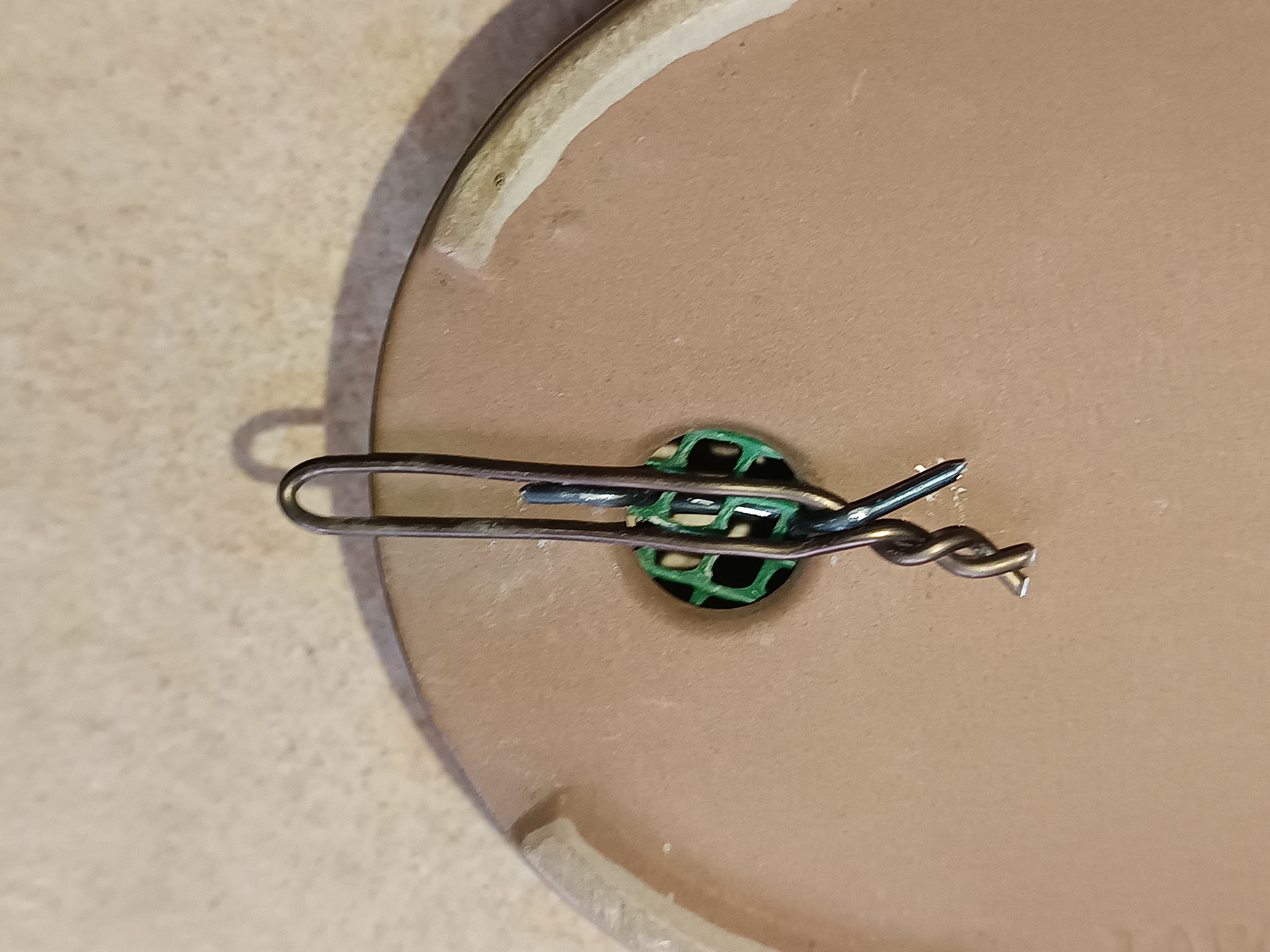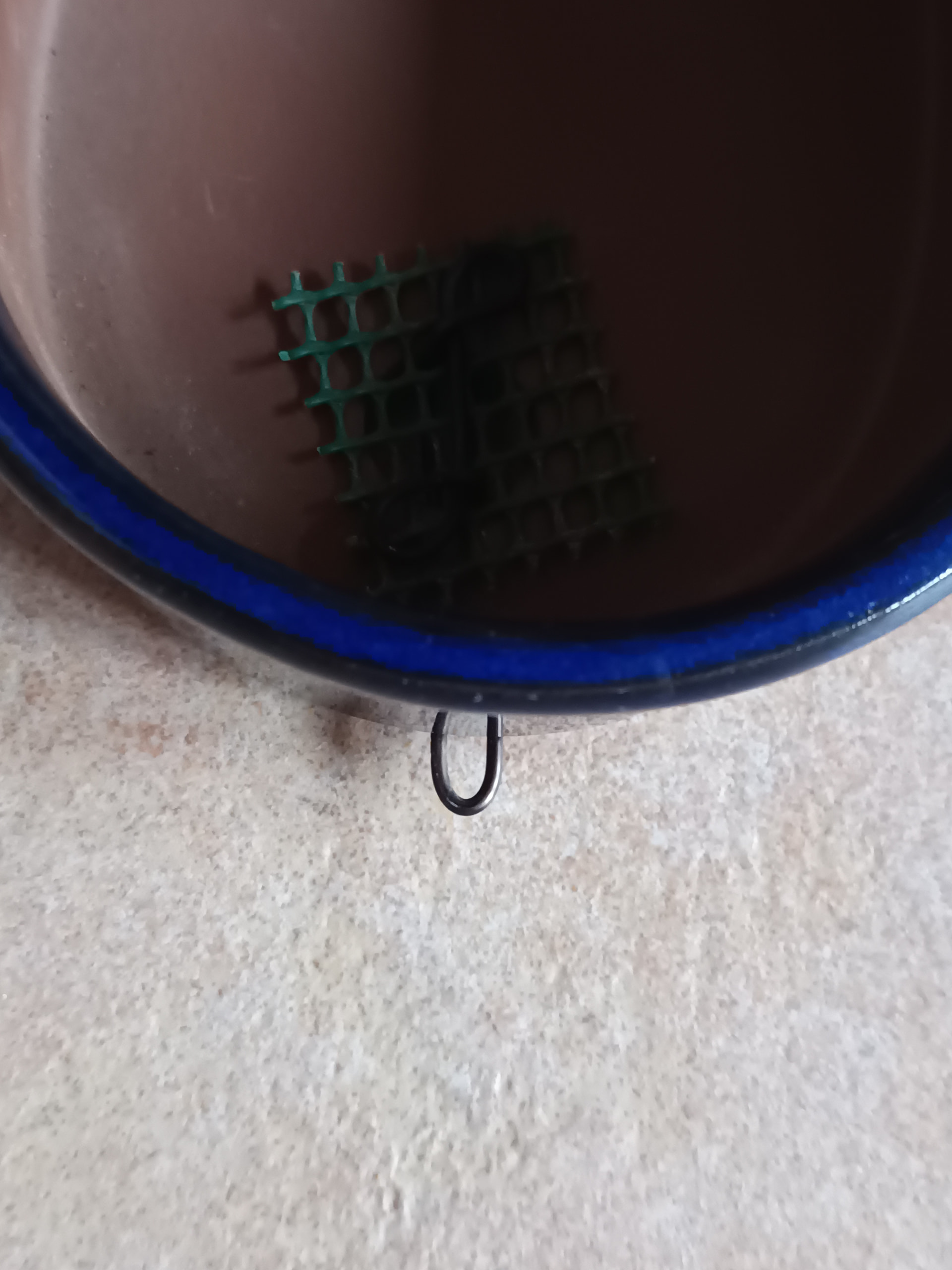 Tu lèves un fil d’ancrage d’une grille de drainage, tu y insères une boucle en fil de 1,5 à 2 mm puis tu rabats le fil de grille
