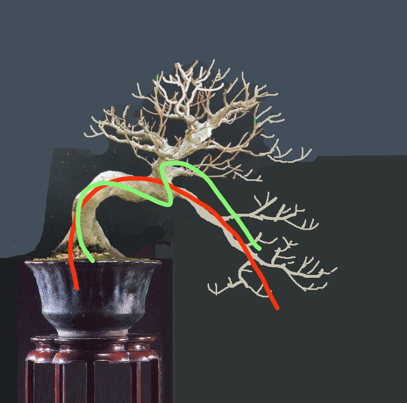 . @Benishidori4ever est partit aussi dans le sens d’avoir de la végétation qui chute sur le côté droit de l’arbre sauf qu’il part sur la branche arrière. Après je pense pouvoir pouvoir gratter quelques degrés d’inclinaison au prochain rempotage si je n’arrive pas à un résultat satisfaisant. L’espoir fait vivre…