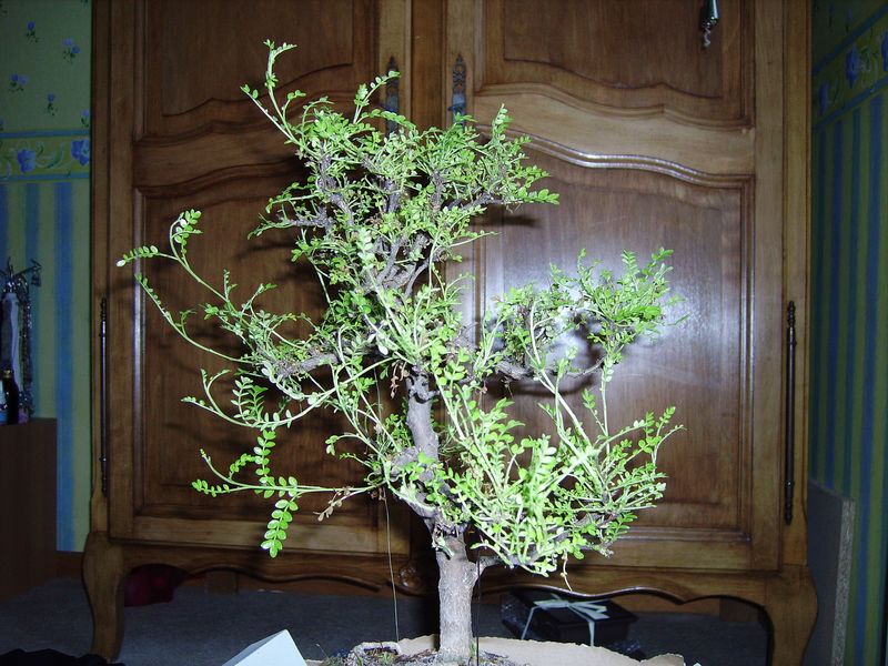 Maintenant il est dans une piece chauffée a 15°C assez prè de la fenêtre !! j’ai pas touché a une de ses feuilles depuis qu’il est rentré ( et il est moche ).