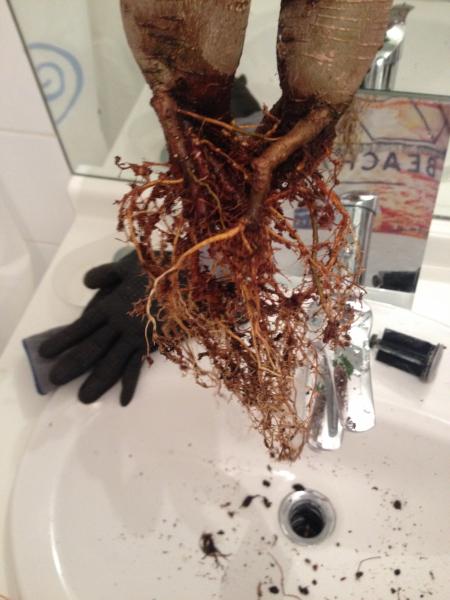 Au niveau des racines je ne sais pas si l'arbre est en bonne santé et si je dois les coupées lors du rempotage dans le mélange.