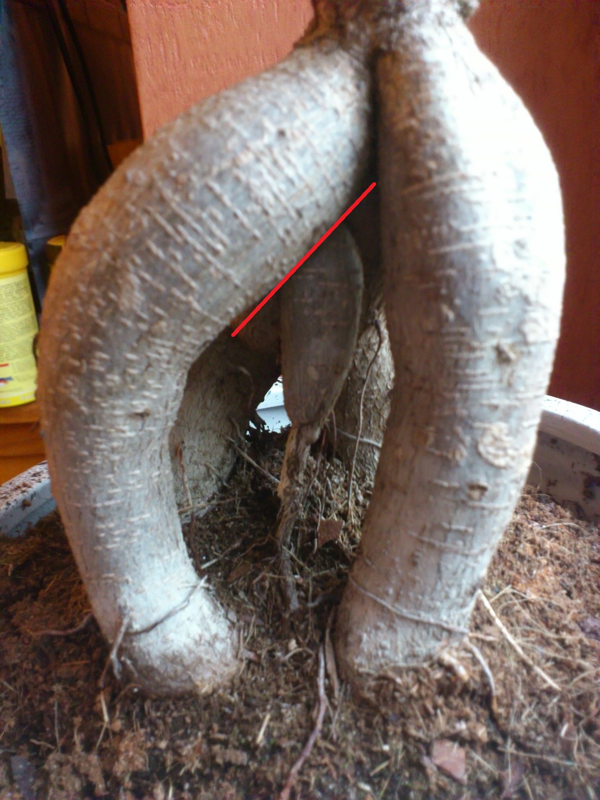 Voilà, j’ai un ficus dit "Ginseng" et au centre de ses énormes racines