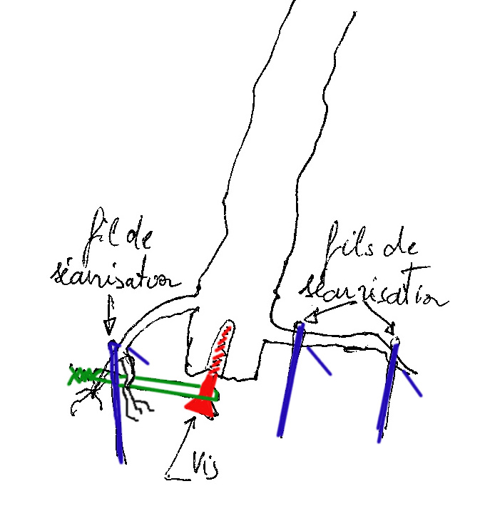 Deux fils se sont avéré insuffisant pour maintenir l'arbre dans la position visée.