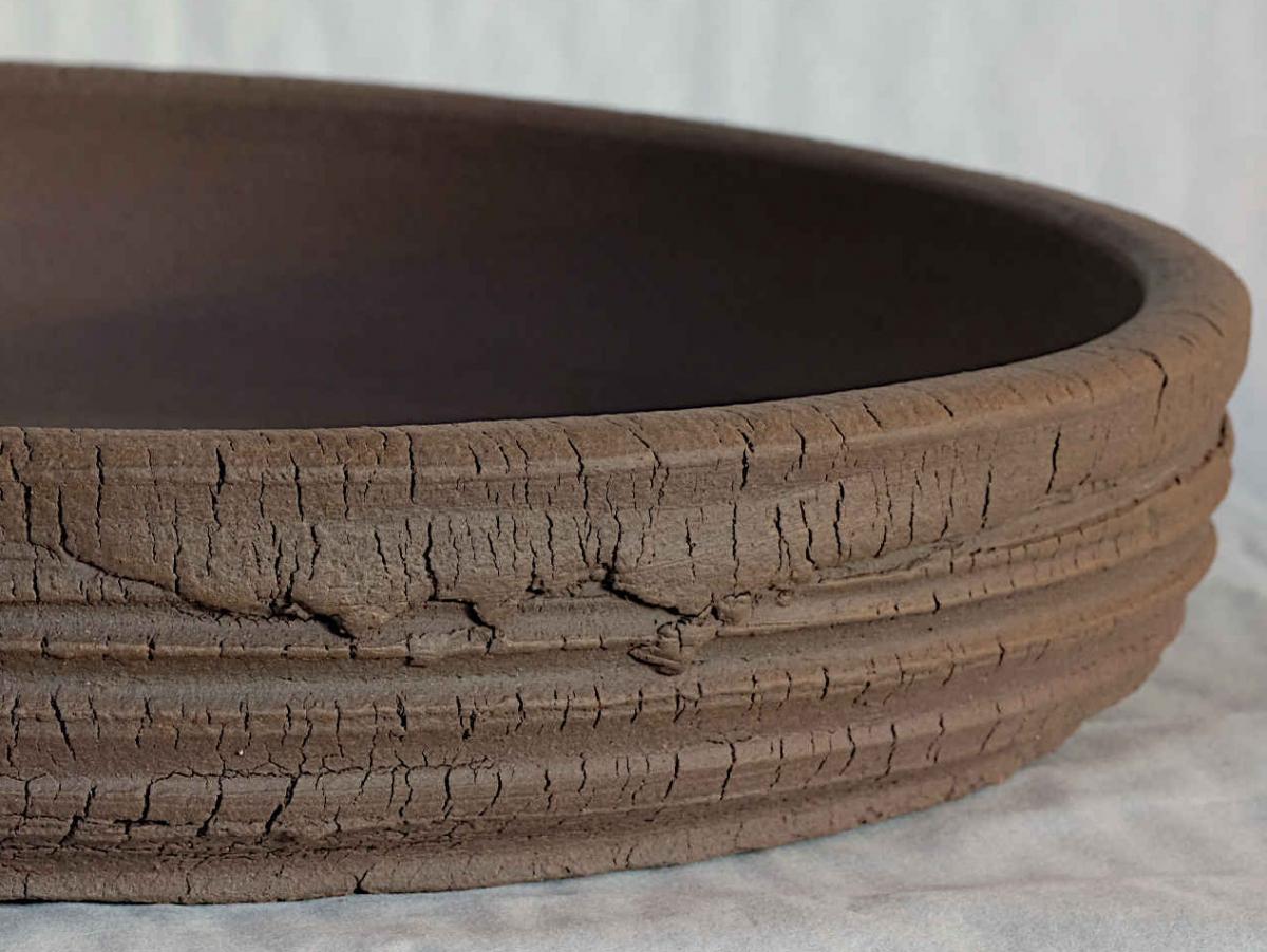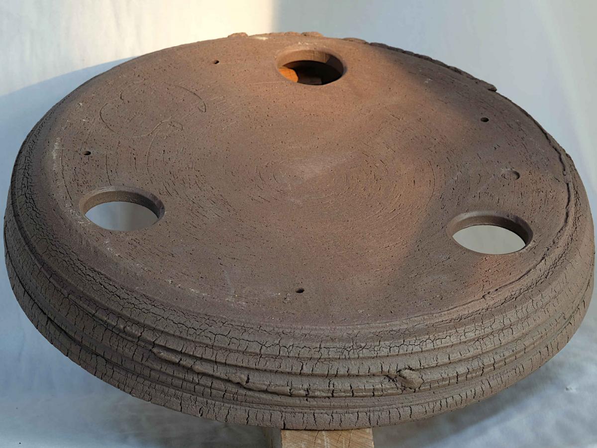 Il s'agit d'un pot relativement plat sorti des fours de Didier Schuller site "Autour des arbres". Je tenais vraiment à ce que soit un pot issu de sa gamme "primitif". C'est exactement le style que je cherchais