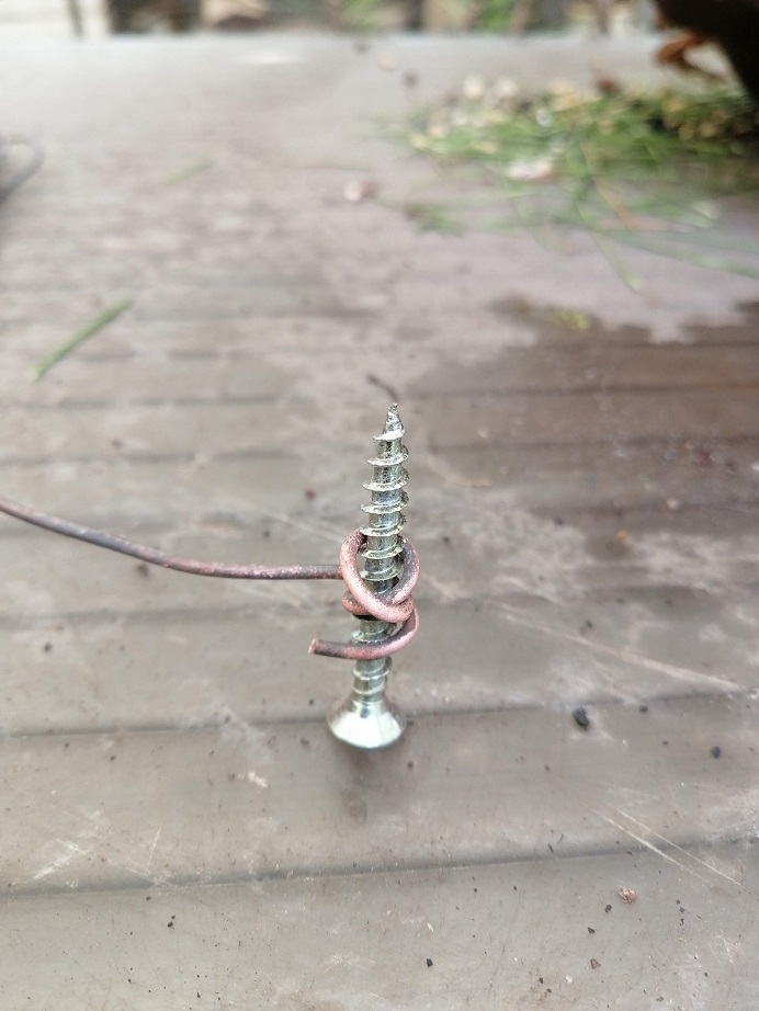 La difficulté majeure que je craignais et que j'ai effectivement éprouvée est celle de l'ancrage au pot d'un arbre à la fois aérien, mince et penché.