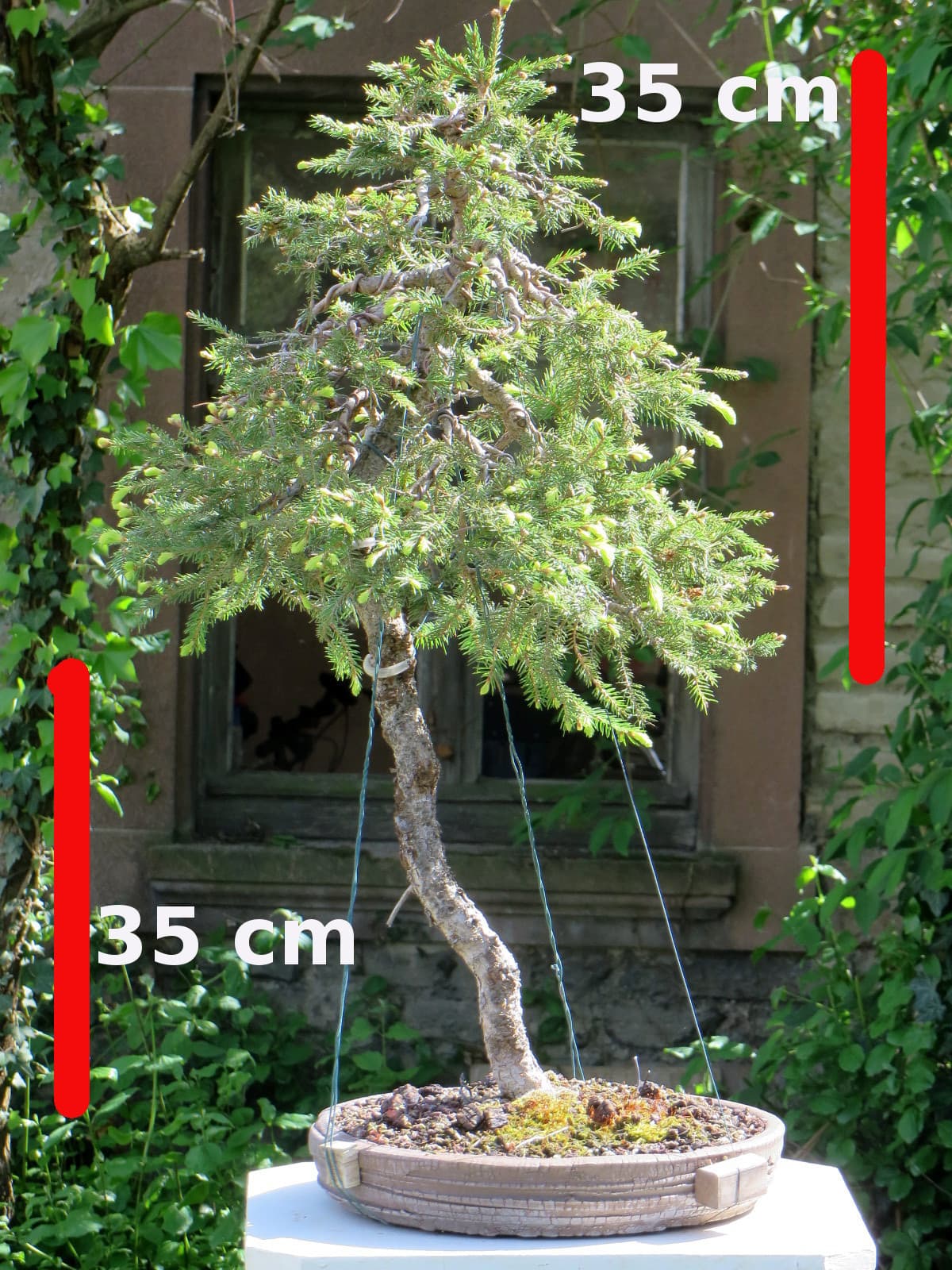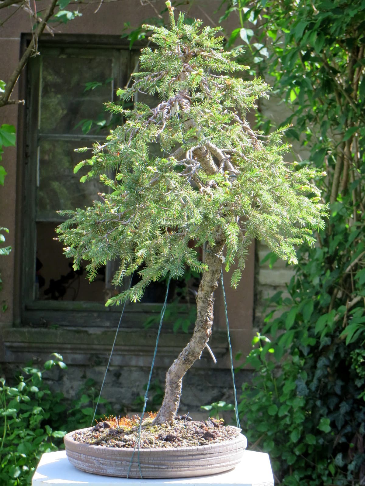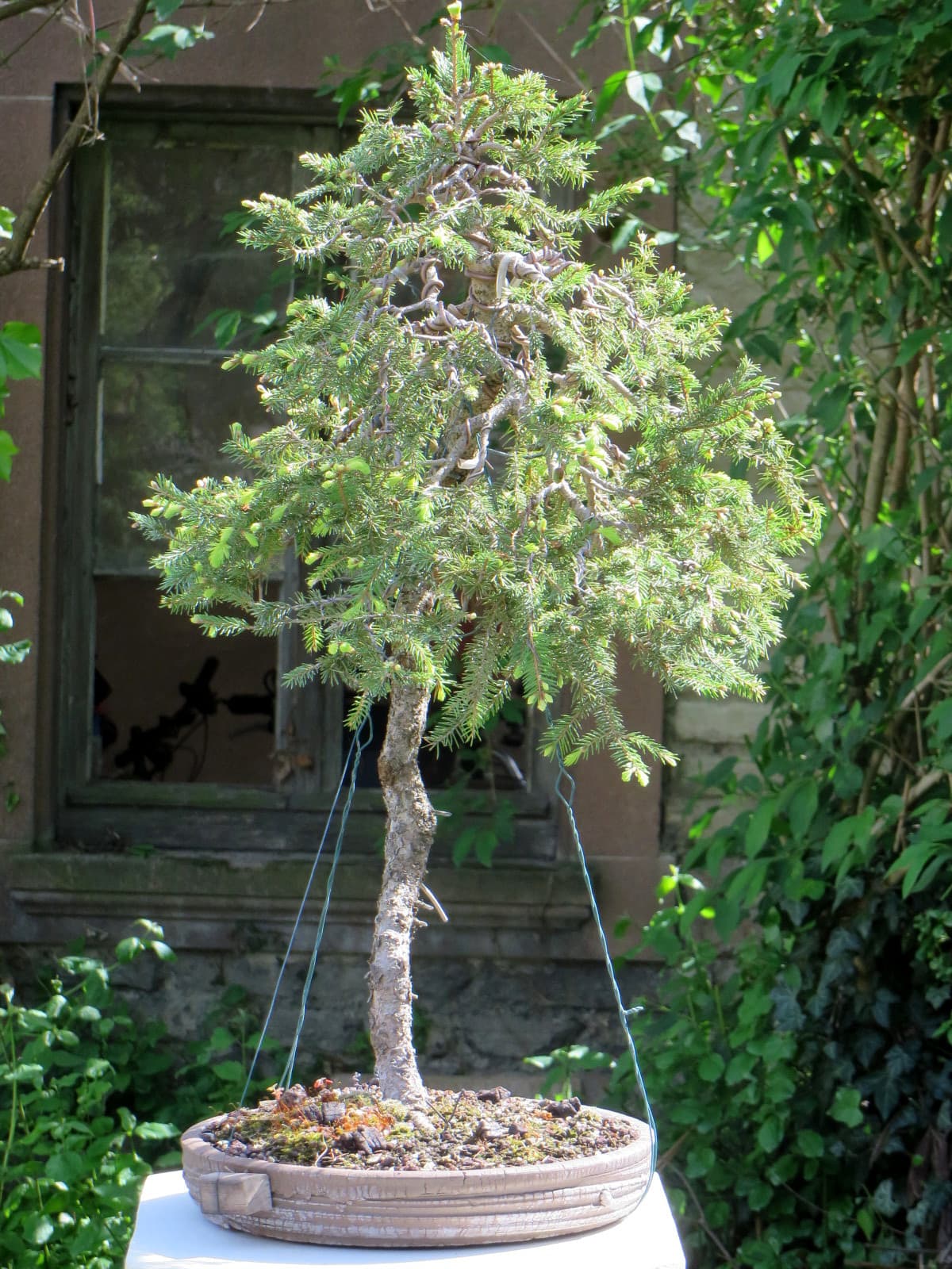 Une fois cet épicéa prélevé, je suis parti bille en tête à vouloir m’inspirer d’un arbre de cette espèce (photo ci-dessous) cultivé selon le style dit du lettré.