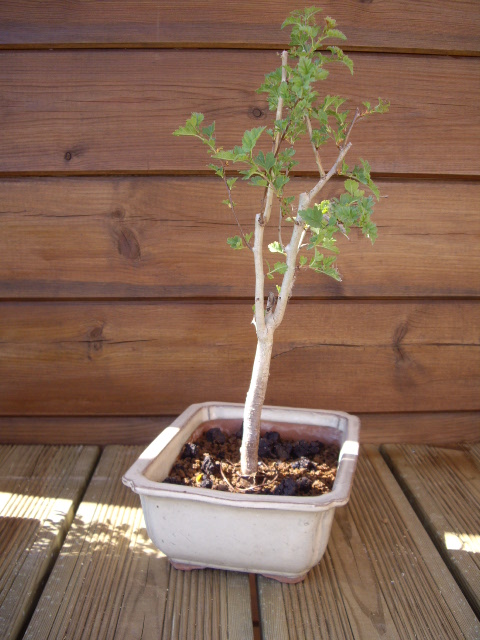 Je vous présence mon aubépine, c’est un pré-bonsai que j’ai acheté dans une pépinière sur le net, j’avais demandé un double tronc mais il est un peu haut