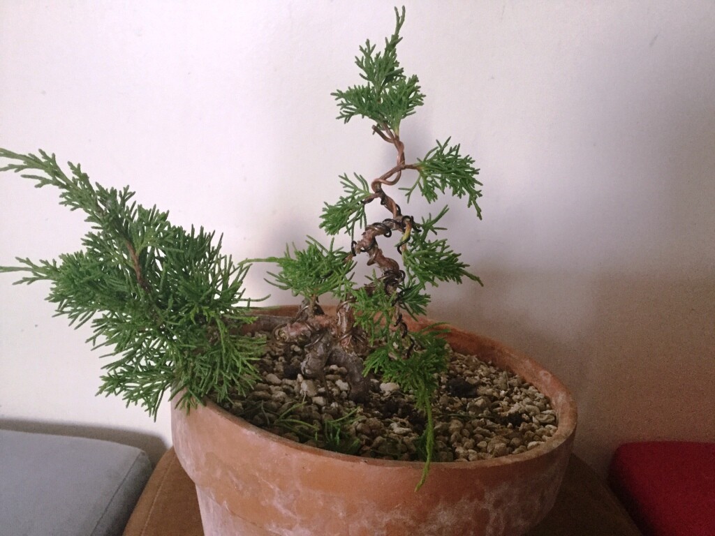 Il a été taillé/mise en forme il y a plus d'un mois, après avoir bien réagit au rempotage. Il repart tranquille.