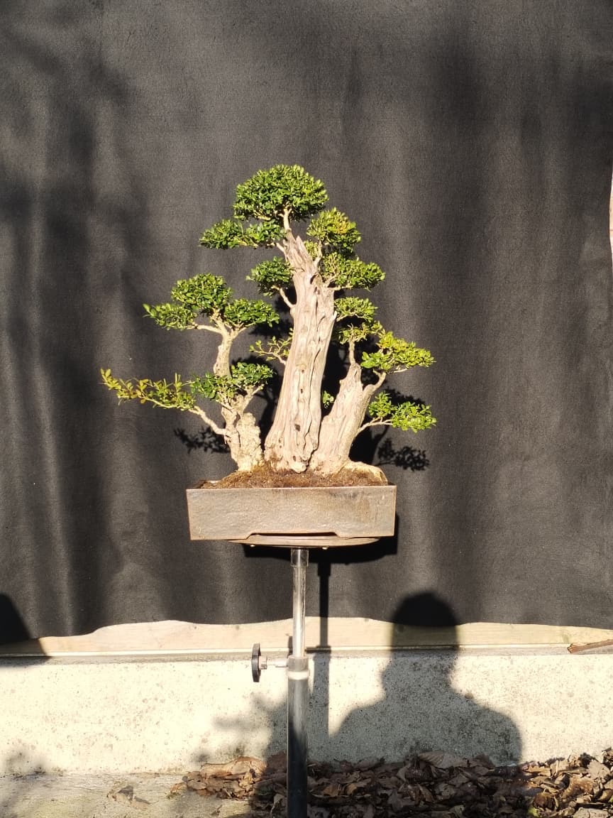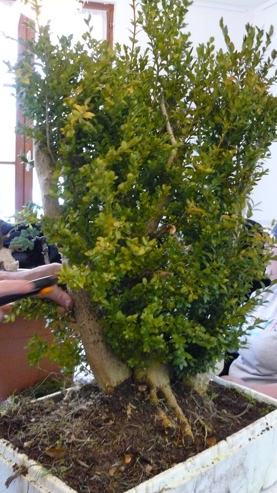 En 2010, j’ai eu l’occasion d’animer un atelier de travail pour un club et pour une raison fortuite qui tient avant tout au coffre de voiture trop petit de sa propriétaire, j’ai finalement hérité après travail de ce gros buis qui venait tout droit d’un prélèvement de jardin.