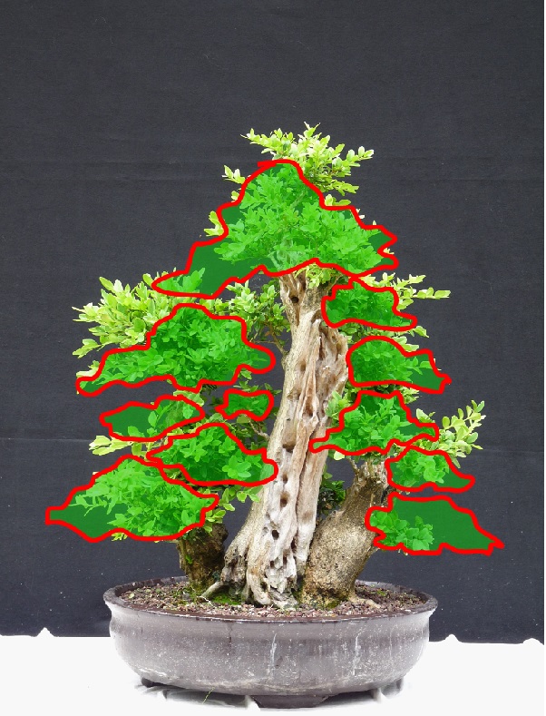 À terme, il y aura sans doute un feuillage plus fourni mais pas trop tout de même car j’ai la vision de ces gros troncs traités comme une roche avec la végétation qui pousse dans les anfractuosites, un peu à la façon Kimura