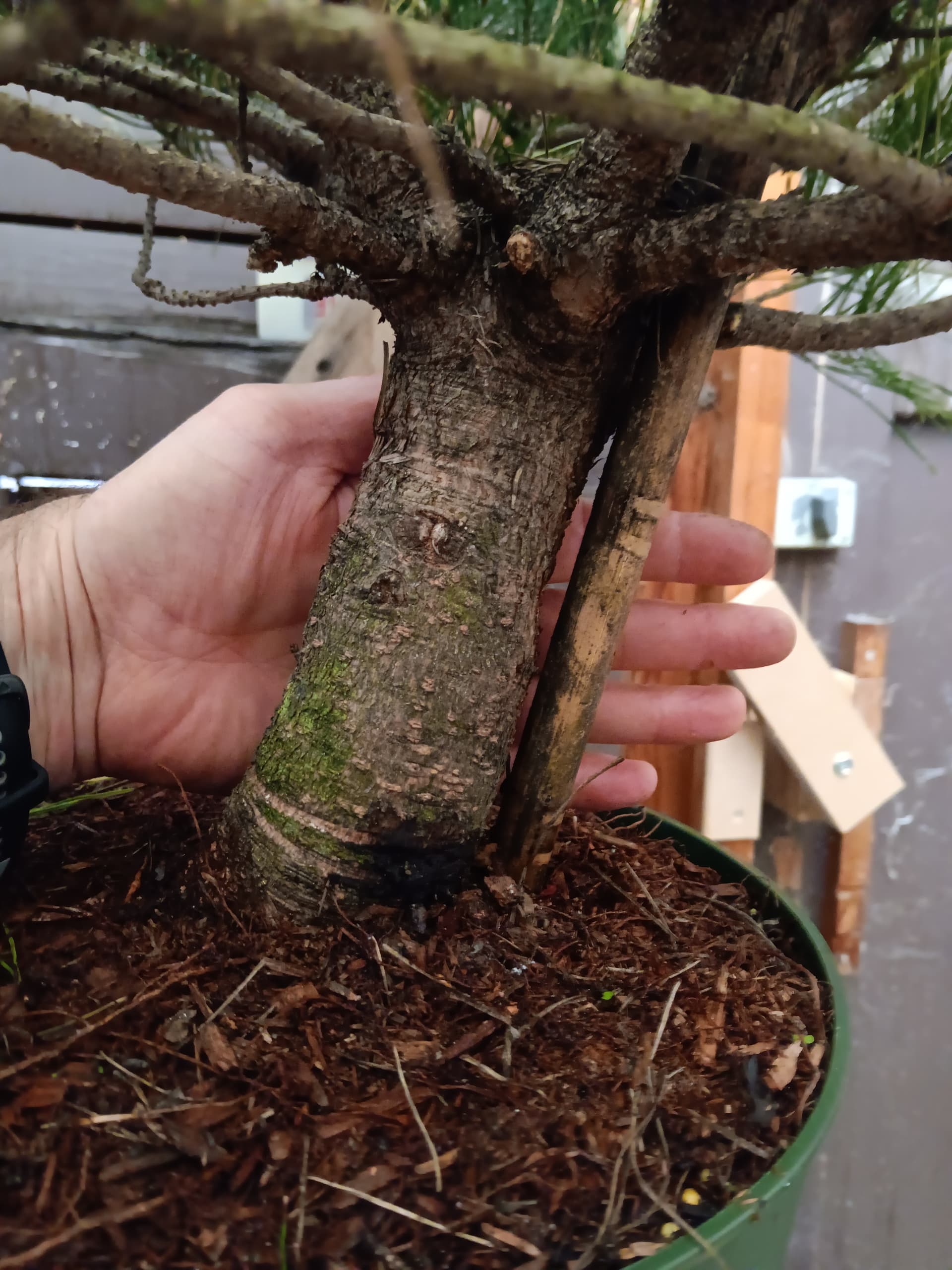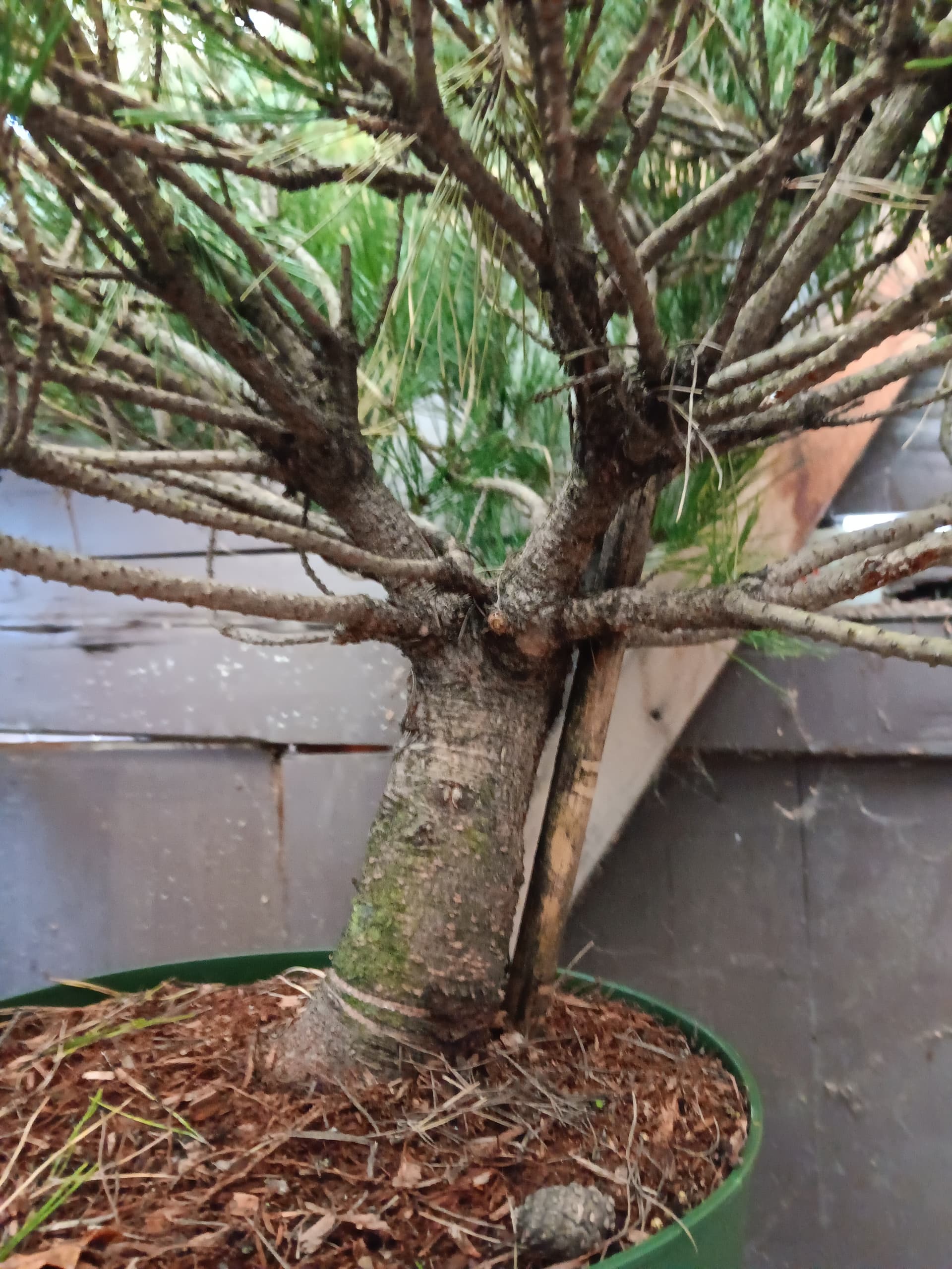 Tronc tout droit, branches en roue de charrette, végétation très lointaine qui nécessitera des greffes, pour en citer quelques uns. Tu as regardé le nebari ?