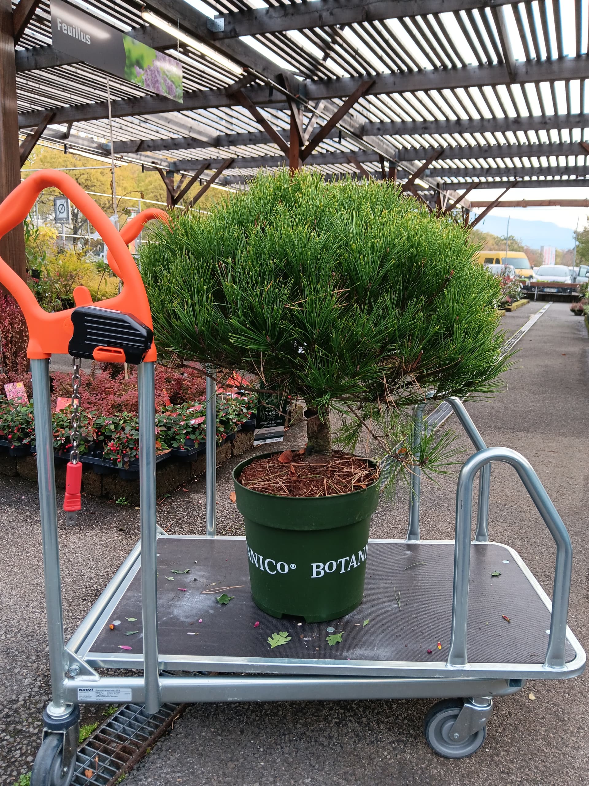 Alors que je me détendait en me promenant au rayon plantes de chez OBI ( fraîchement installé à Genève ) Je vois ce bel arbre, spécimen isolé, me disant quil serait trop cher pour moi ( j’en ai vu à 300.- chez Schilliger si vous connaissez ) le prix de 109.- pour la taille du spécimen et de son tronc m’a étonné et j’ai évidemment craqué