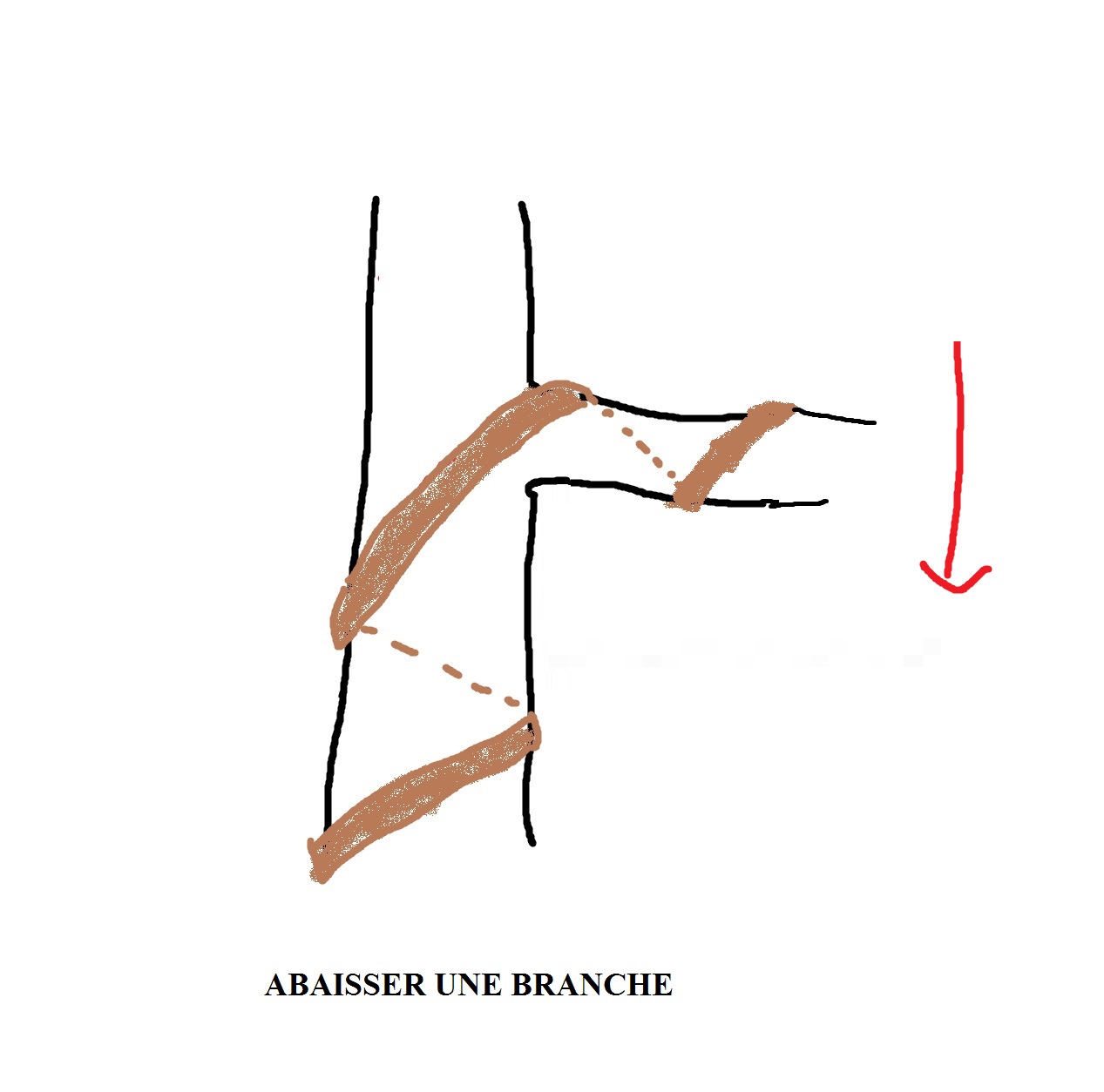 D’accord, tu incise vraiment à la jonction du tronc et la branche, à quelle profondeur ? Un tiers ? À la moitié ? A la scie ? La coupe dans l’alignement du tronc ou un peut de biais ?