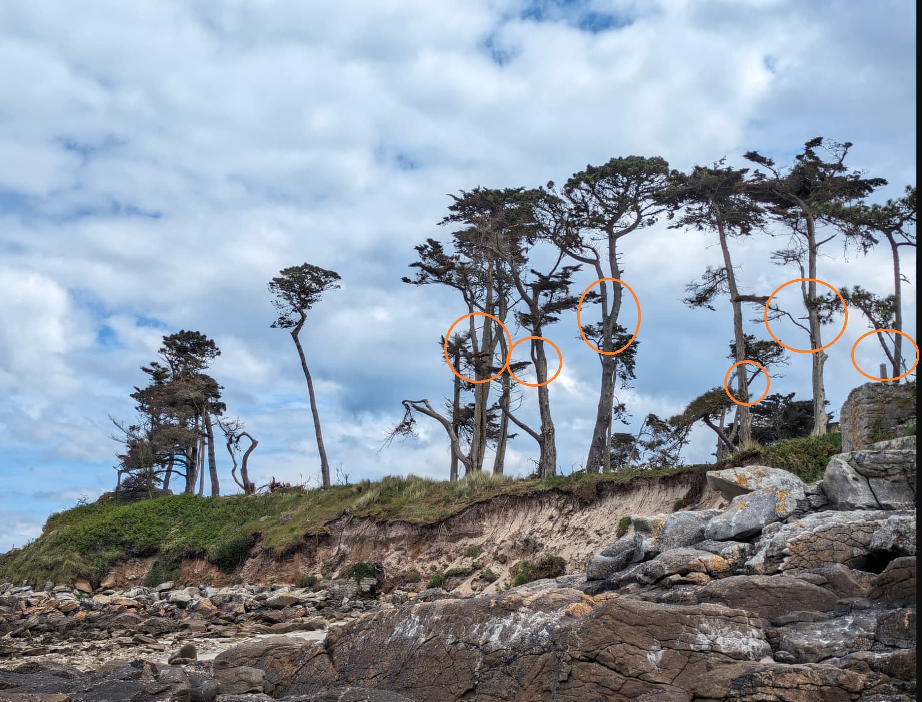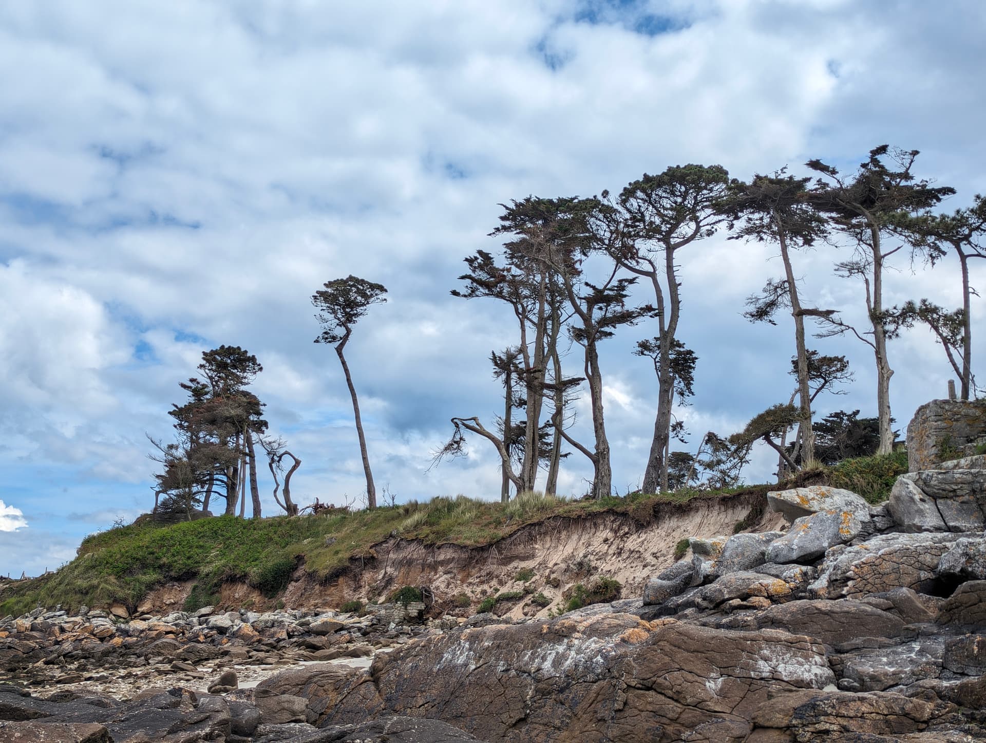 Si vous allez dans le sud Finistère, vous aurez des pins et des cyprès juste énorme. J’en ai vu avec des diamètres de tronc de facilement 1,50/2 mètres, j’aurais dû prendre des photos. Sur la côte nord, vous n’aurez pas ça.