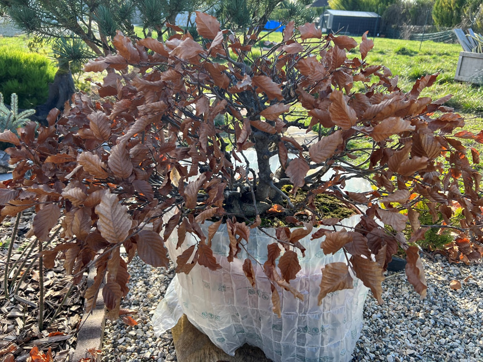 J’aime bien le fait qu’il fasse un peu forêt a lui tout seul. Comme protection durant l’hiver j’ai juste mis du papier bulle. Je l’ai taillé début février bien avant le rempotage, je ne sais pas exactement quand l’arbre envoie de l’energie dans les bourgeons mais je me suis dit que j’allais tailler tot pour évité qu’il envoie cette énergie inutilement dans les branches que je risque de couper.