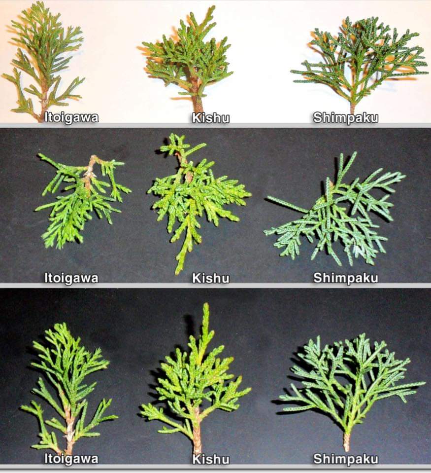 Effectivement, « shimpaku » est le terme générique pour le Juniperus chinensis utilisé en bonsai, Kishu et Itoigawa sont deux variétés (ou plutôt deux origines géographiques, dont les arbres prélevés avaient de bonnes caractéristiques pour le bonsai et ont été multipliés par bouturage)…