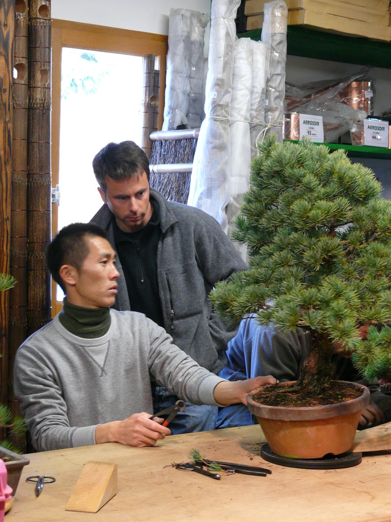 SK : J’ai l’impression que les européens veulent trop imposer leur technique sans tenir compte de l’arbre et surtout sans en maîtriser la culture. Il manque aussi de mise en scène dans la présentation des arbres. Le principal conseil que je peux leur donner est de bien observer les arbres, d’être patients. Il faut se concentrer sur la culture et non sur la quantité. Il est préférable d’acheter des sujets ayant un fort potentiel même très jeune et d’apprendre à reconnaitre le potentiel de chaque sujet, à observer ses réactions, sa pousse, etc.