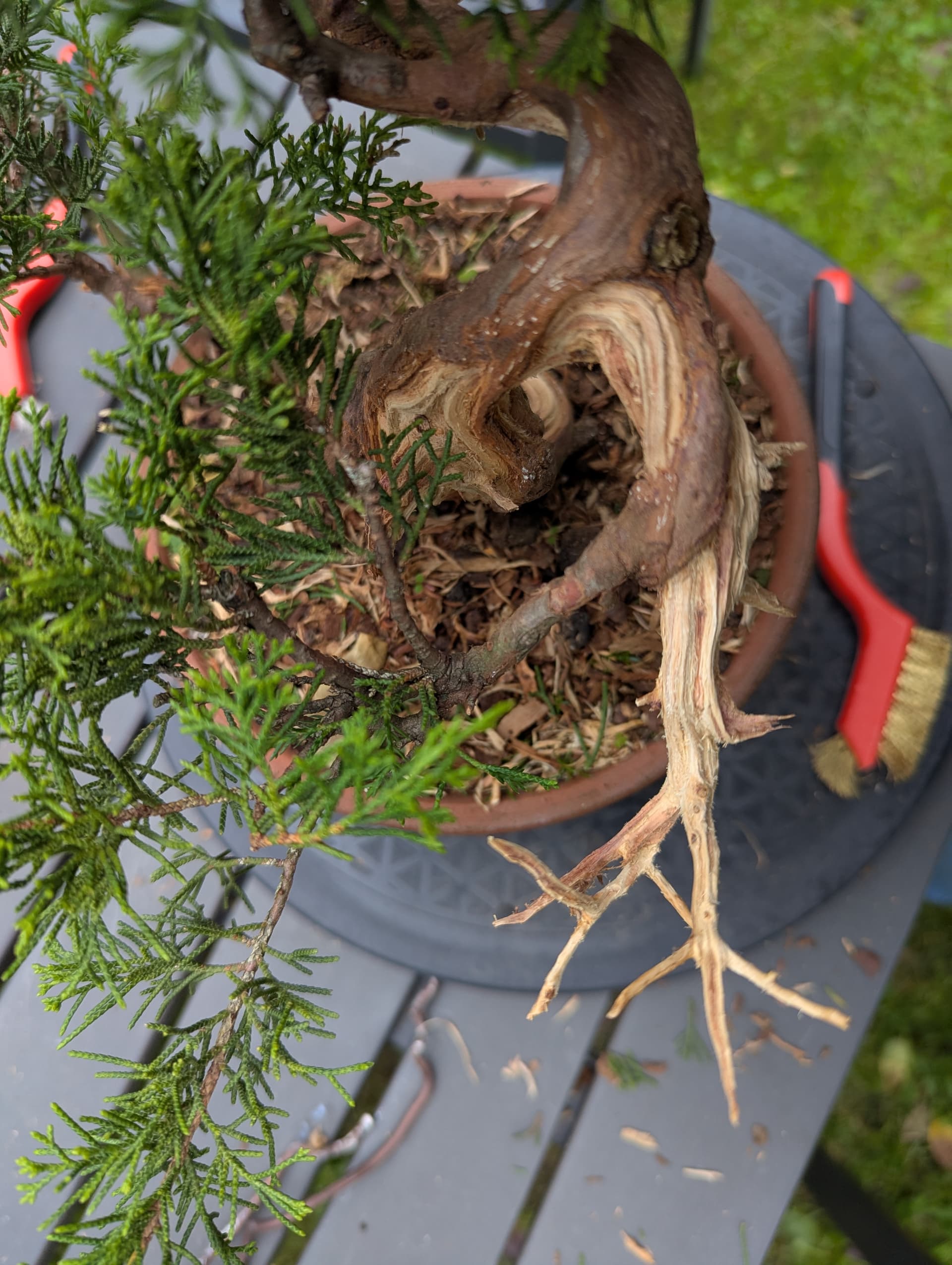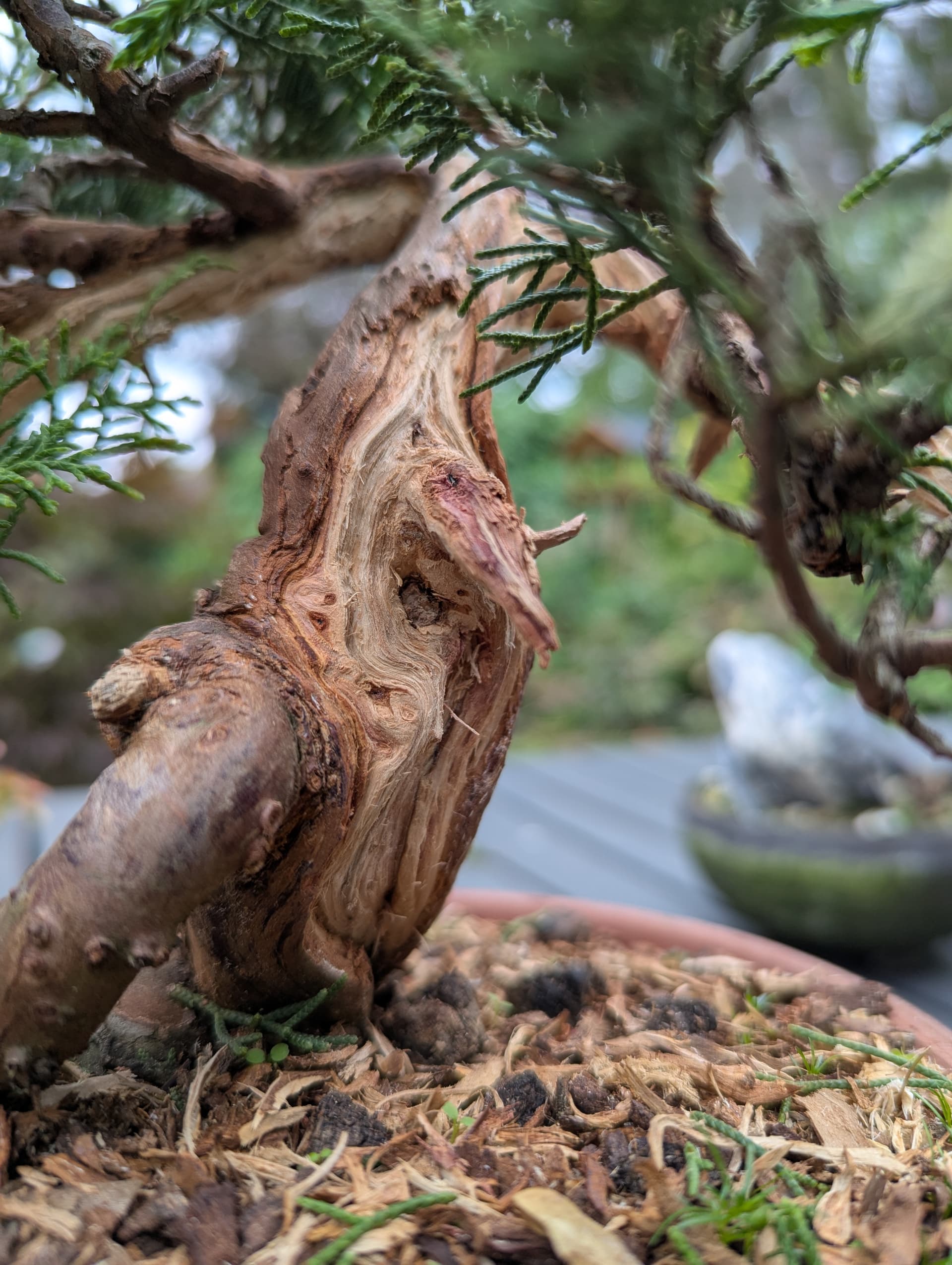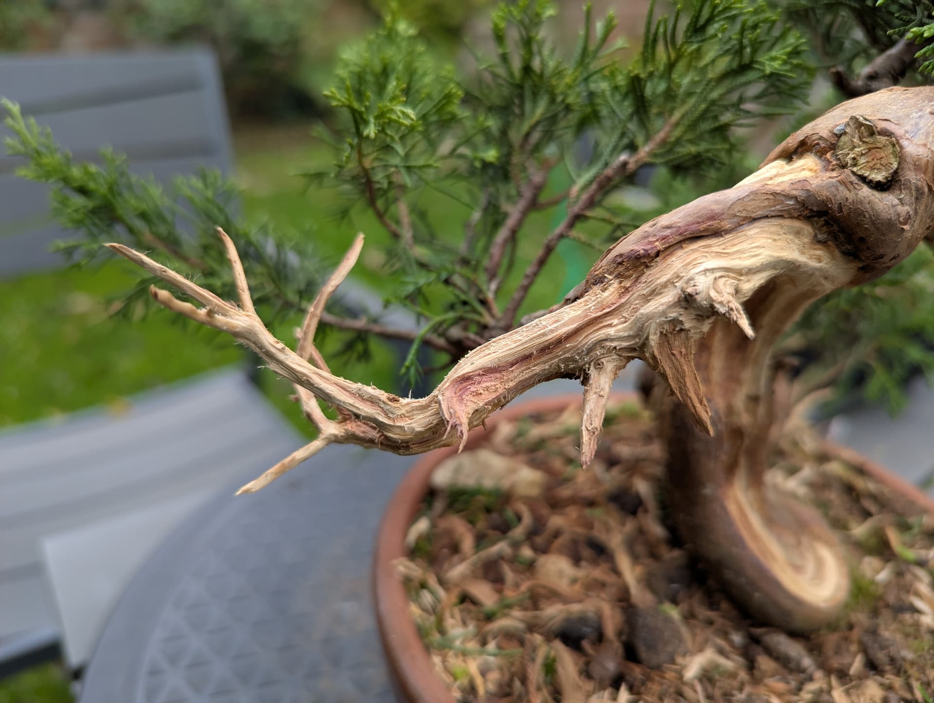 Pas sûr que ce soit possible de “tirer les fibres” sur un vieux bois mort de sabine yamadori ![]()