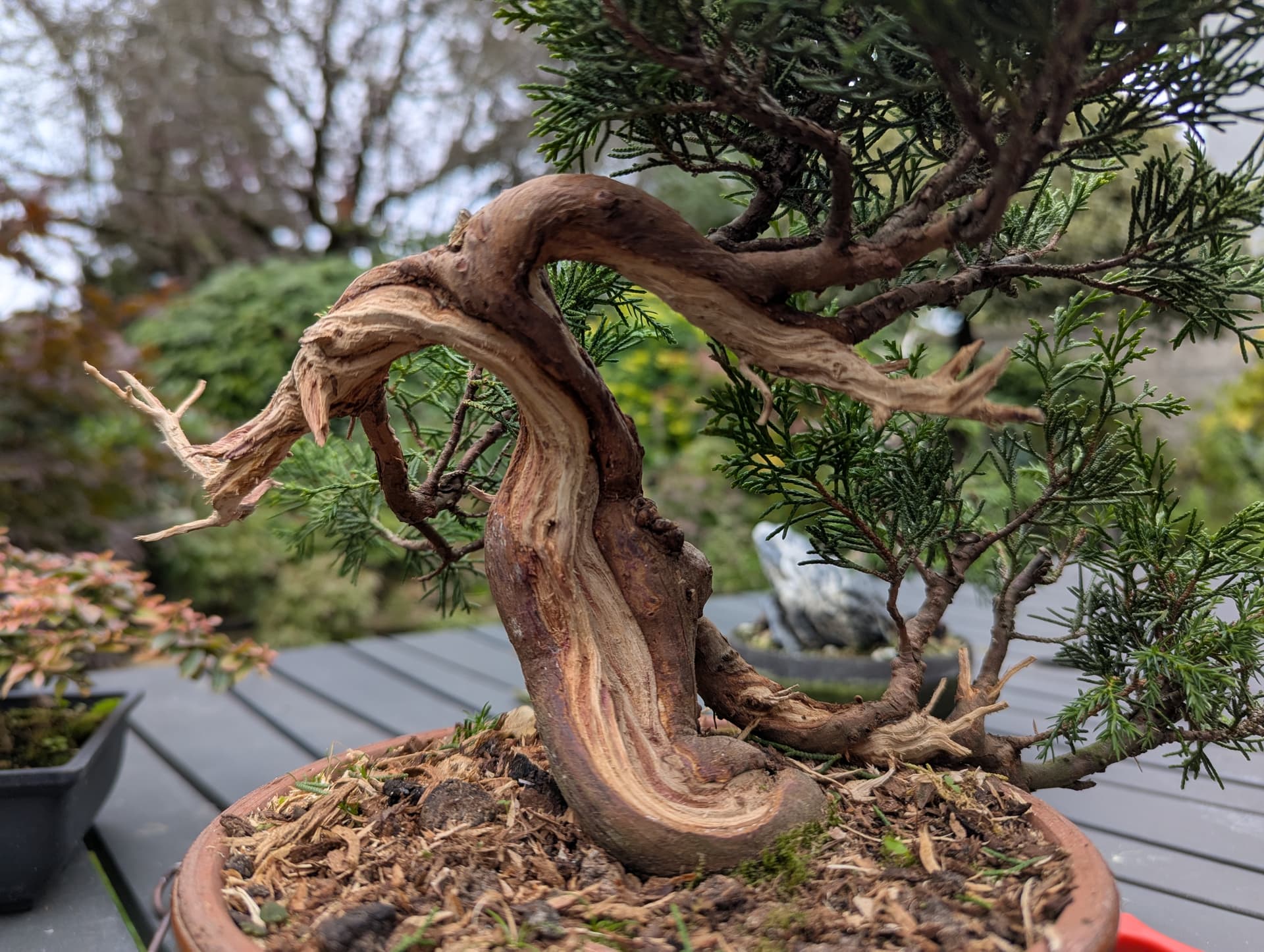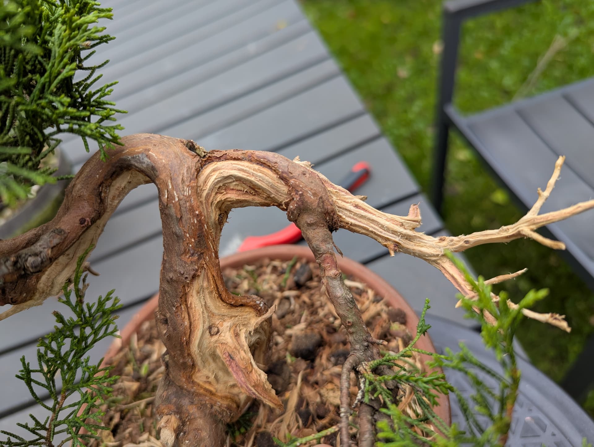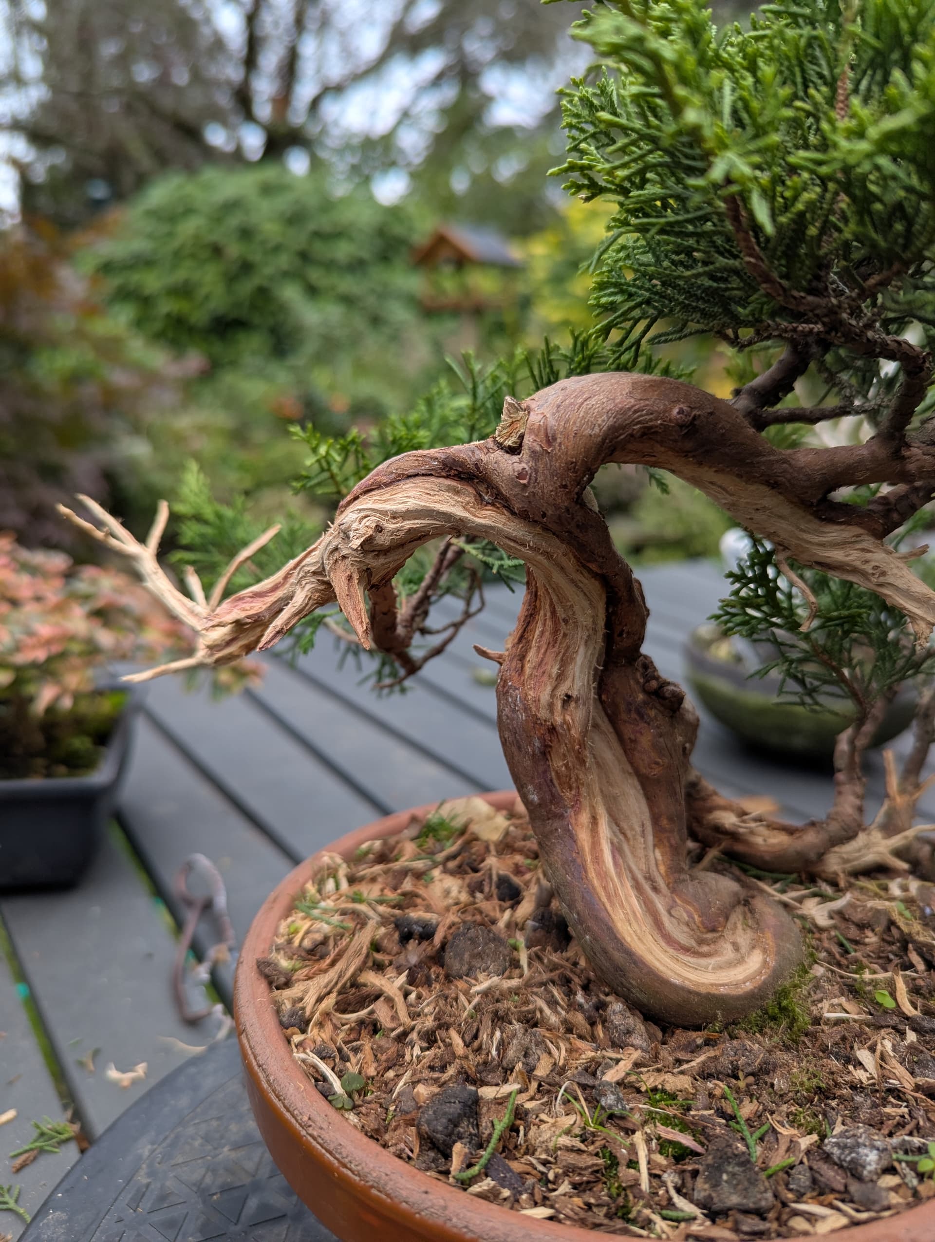 Pas sûr que ce soit possible de “tirer les fibres” sur un vieux bois mort de sabine yamadori ![]()
