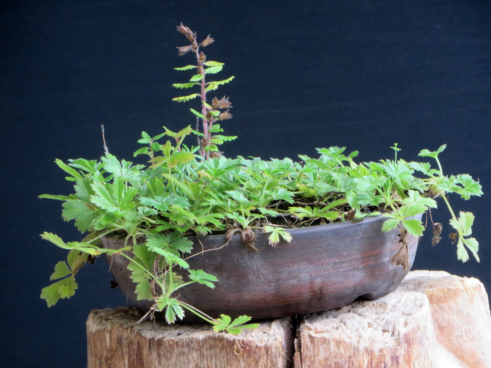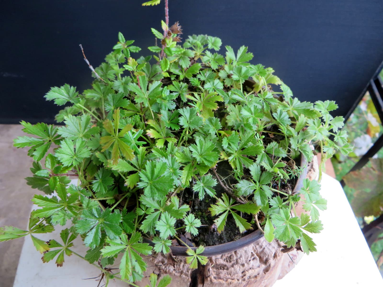 En réponse à @CG69 qui se pose des questions à propos de sa petite potentille dans ce message, j’aimerais apaiser ses doutes. Les potentilles se développent très bien en pot.
