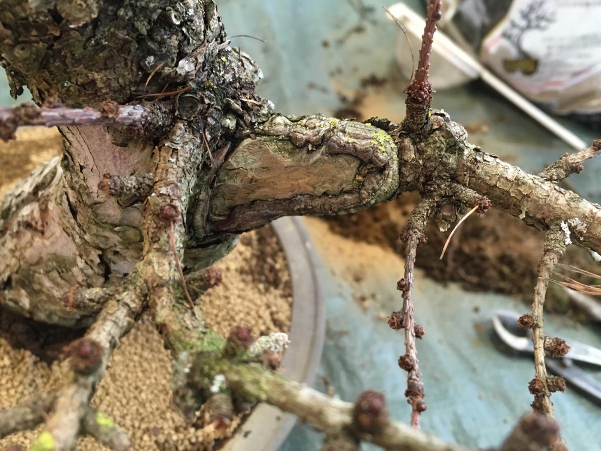 Je l’ai acquis au Noelanders Trophy XII, en 2011. Ma première opération fut de le rempoter au débourrement dans 50% akadama / 50% pumice.