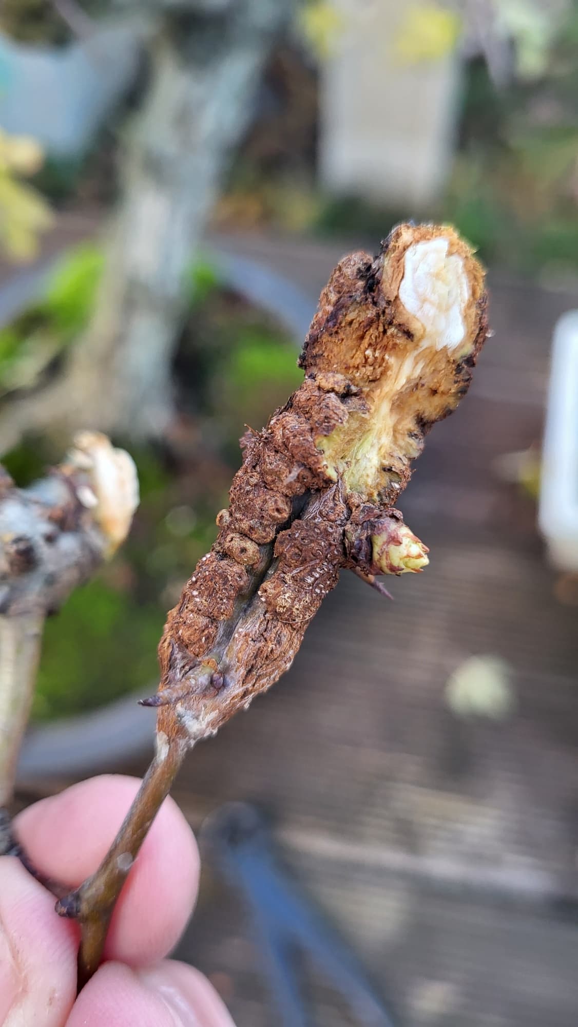 Effectivement, la conicité n’est pas sa première qualité, mais elle est présente et suffisante à mes yeux pour la laisser ainsi. Toujours ces chancres… la aussi, liquide a jin en préventif à compter de cet automne