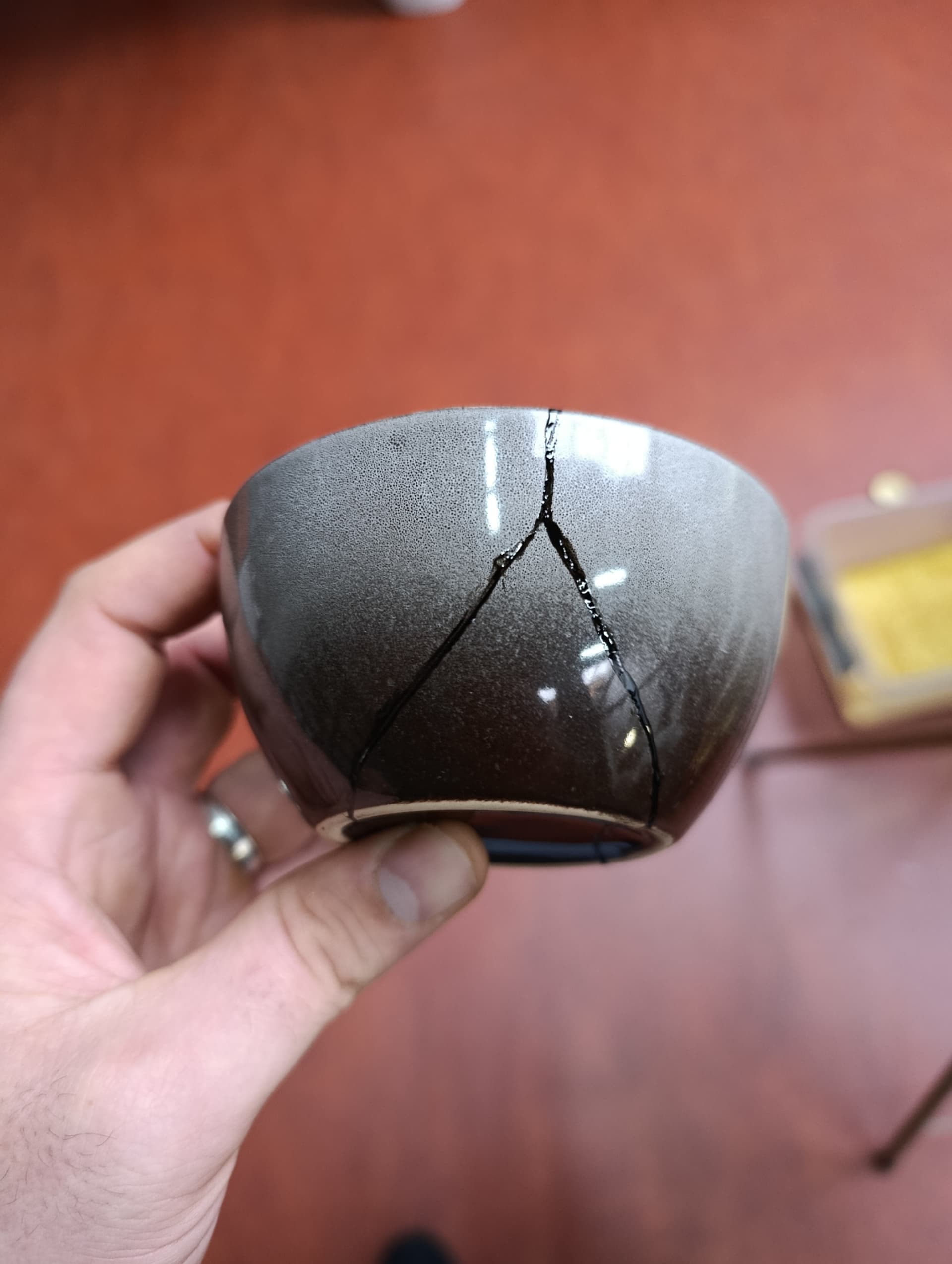 Toutefois, lorsque l’objet revient lamentablement rafistolé, le shogun piqua une grosse colère. Ainsi, il demanda à ses artisans de trouver une manière plus esthétique de restaurer son bol favori.
