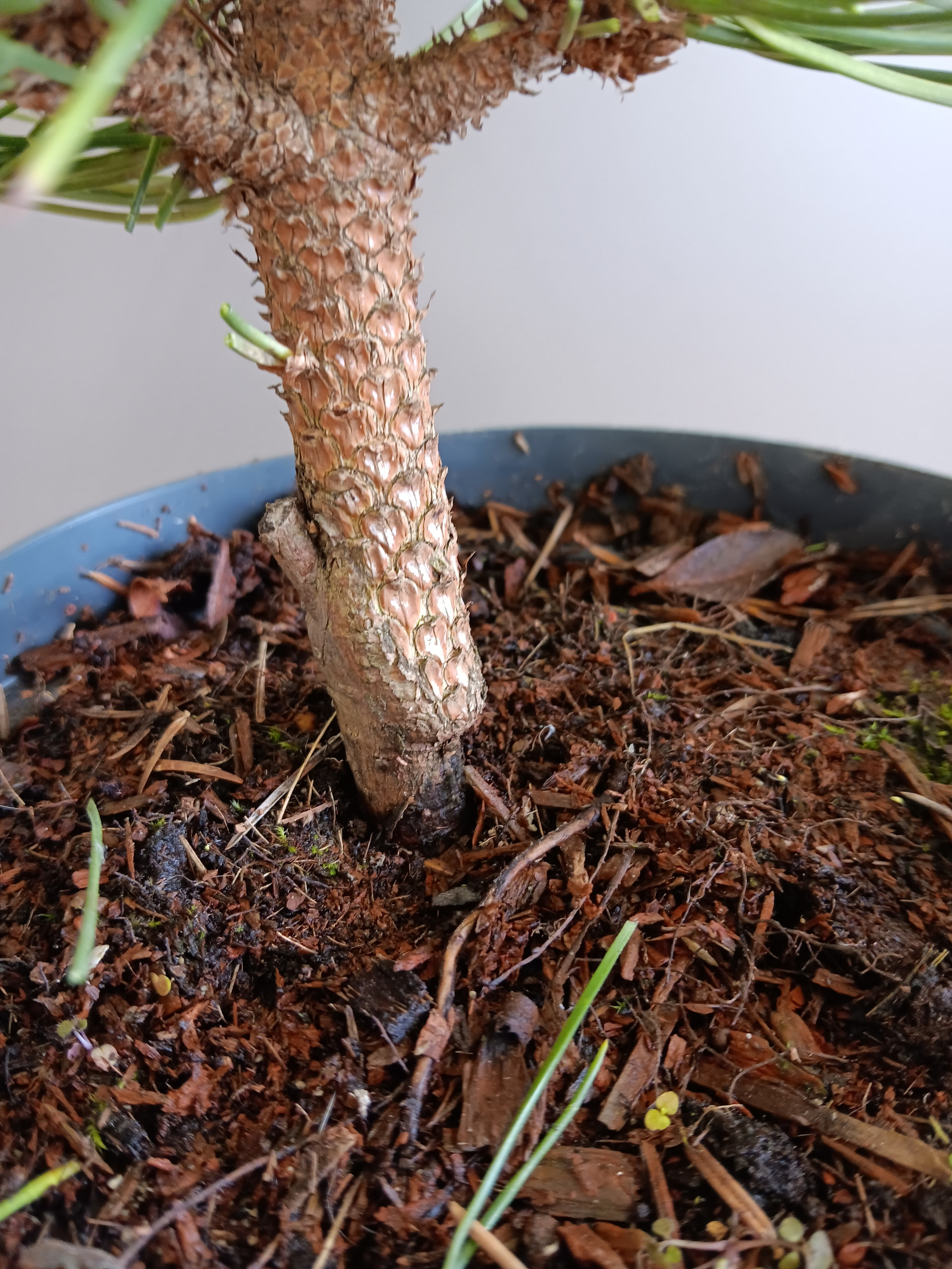 j’ai remarqué que les ecorces se developpent moins (ou se délitent) dans le sol donc si tu veux que la base se developpe, pour moi, il vaut mieux qu’elle reste hors du substrat. De toutes façons, sur un arbre, on veut voir les racines (le nebari)..