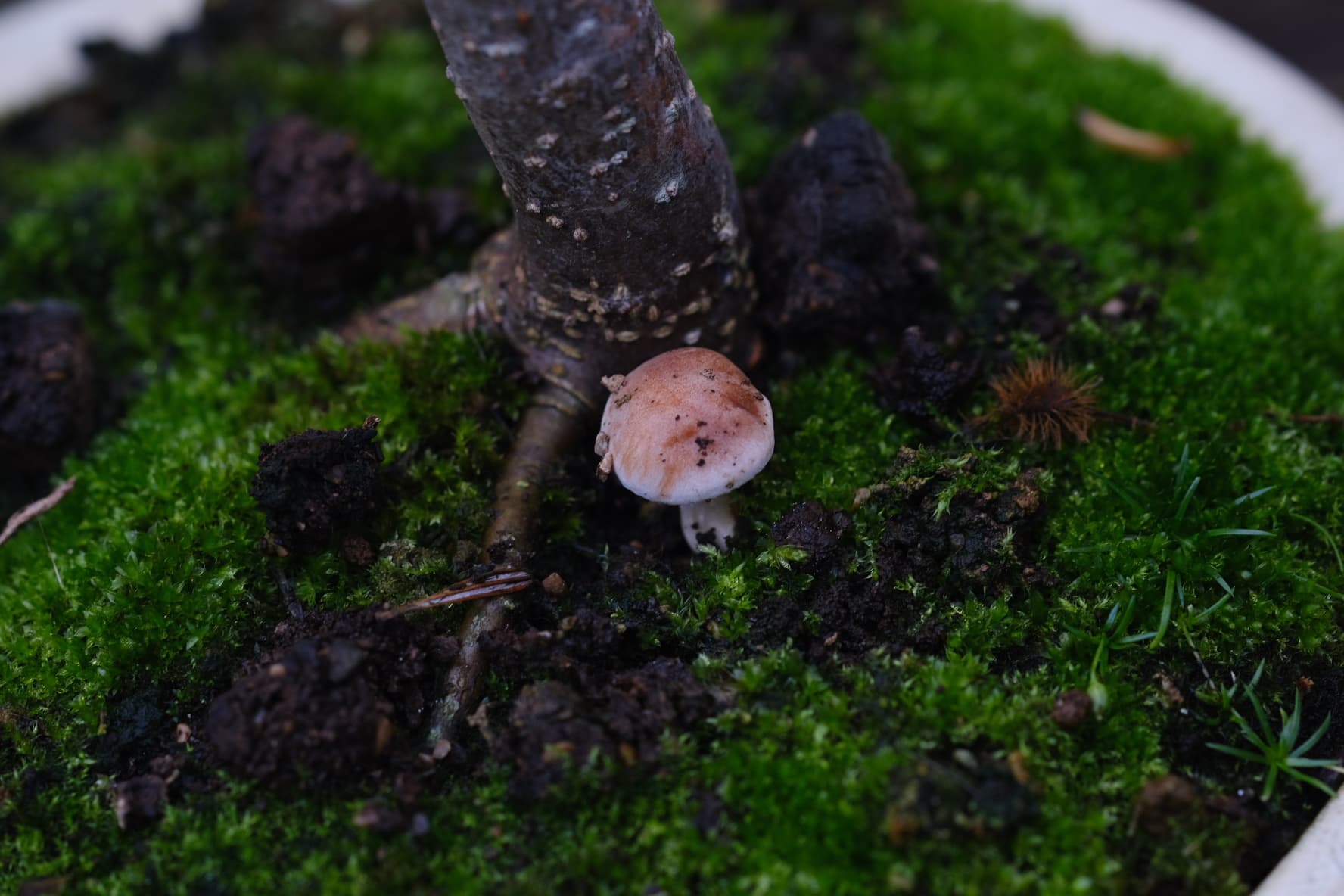 Il a poussé au pied de mon Carpinus Japonica, le substrat est 100% akadama.