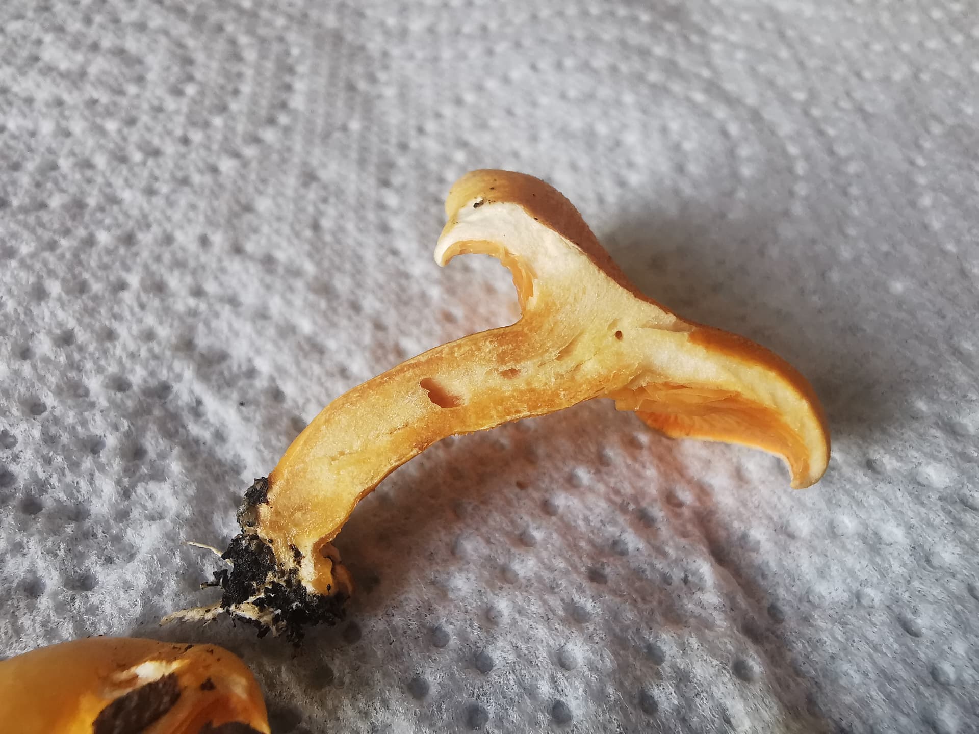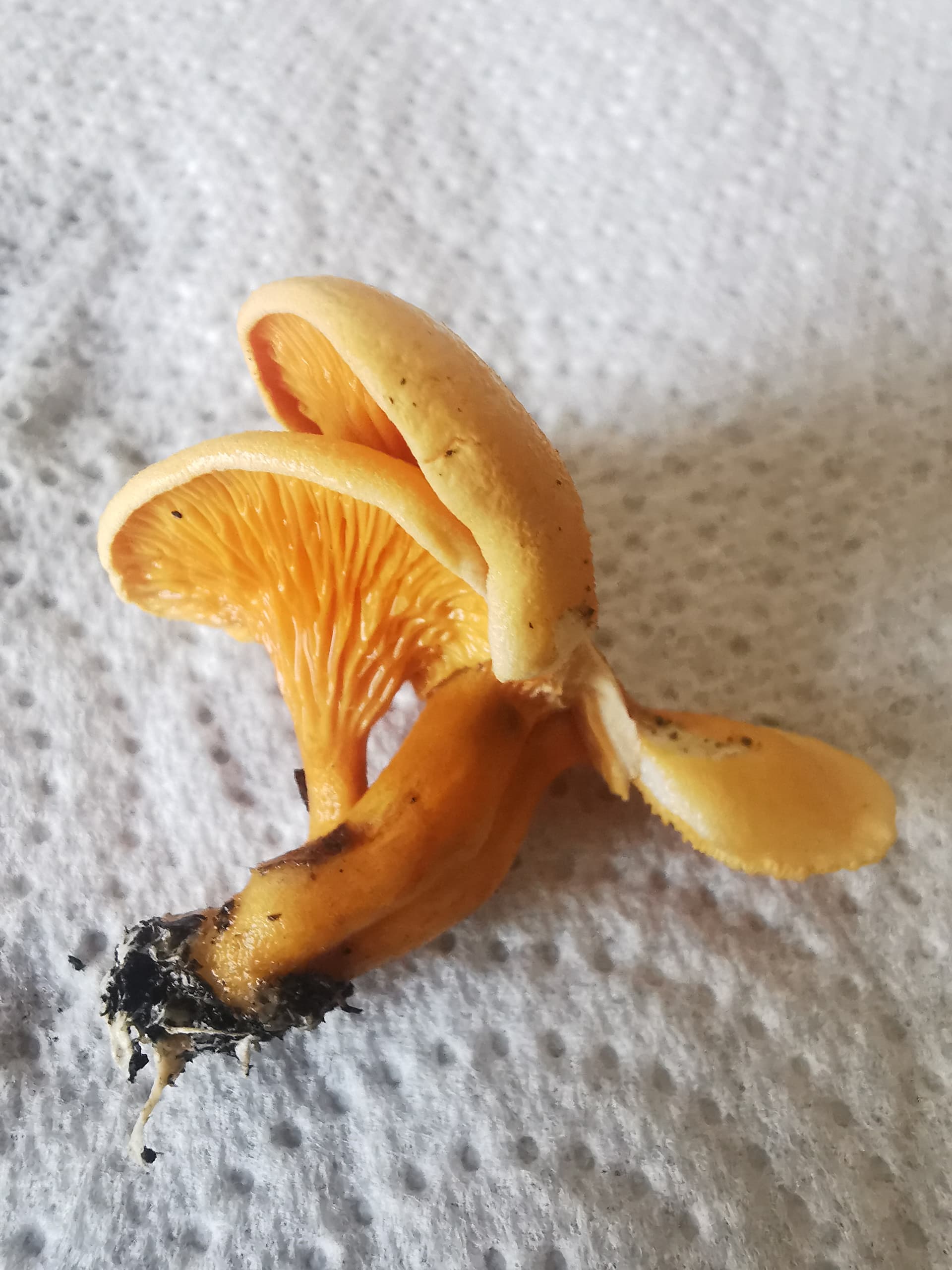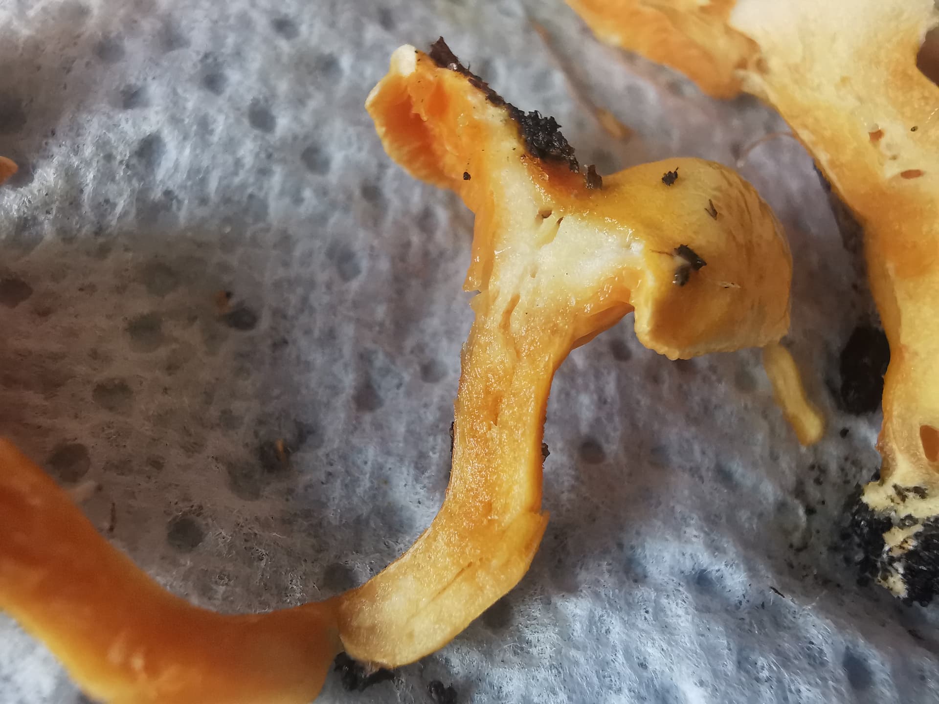 Fausse girole à gauche, vraie à droite et aucun risque sanitaire puisque les deux sont comestibles mais vu la quantité, pas de quoi faire une omelette