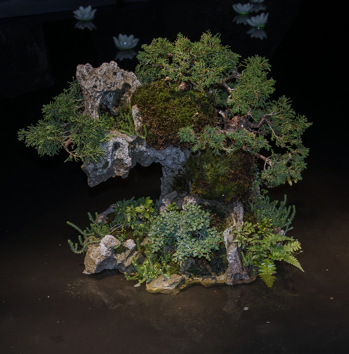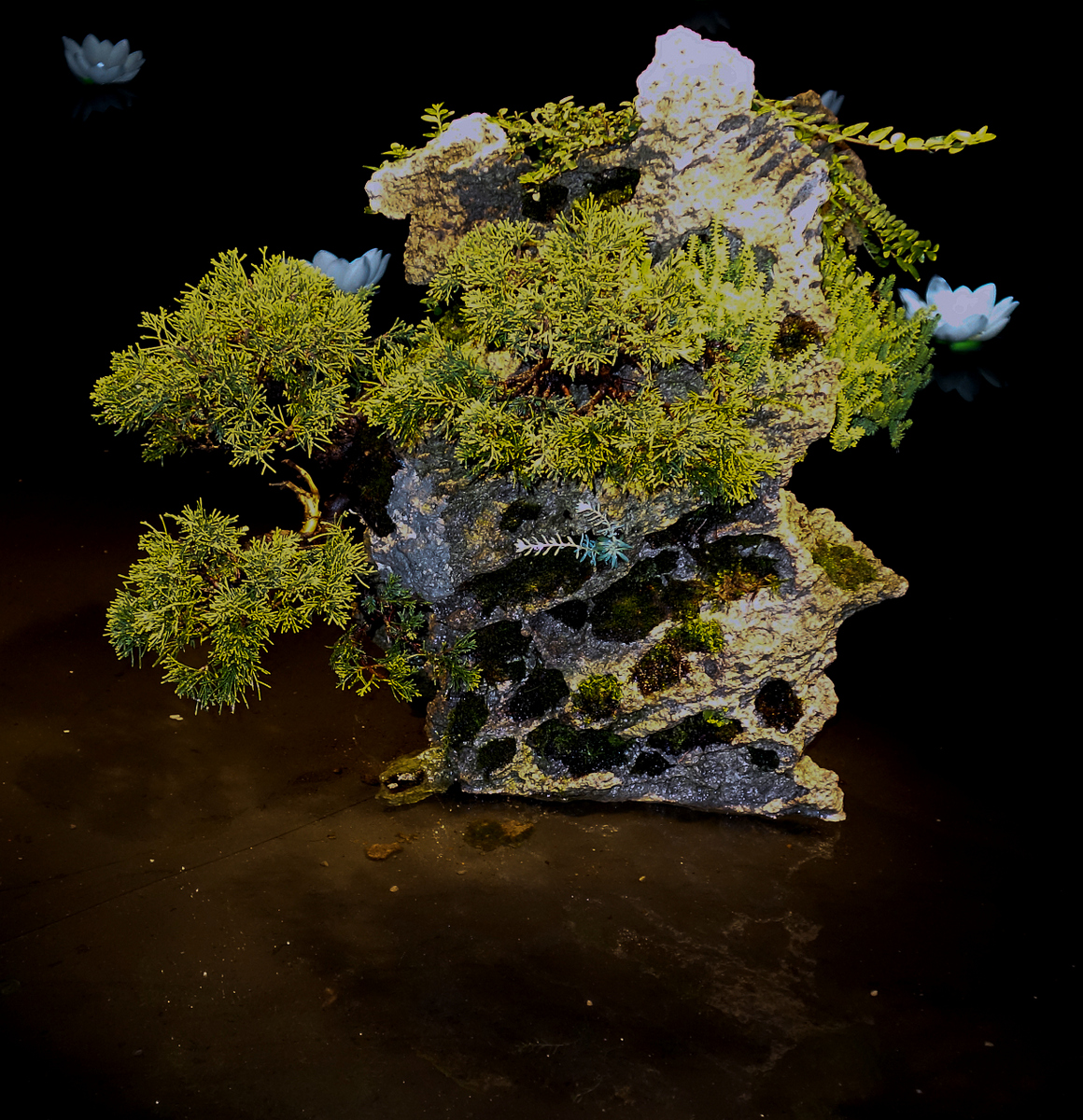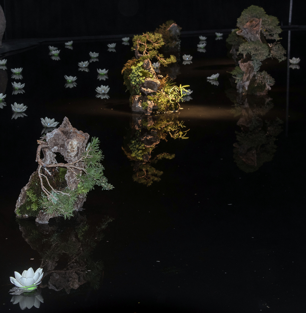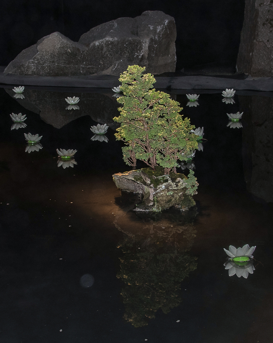 Présentation très originale sur l'eau et dans une semi obscurité.